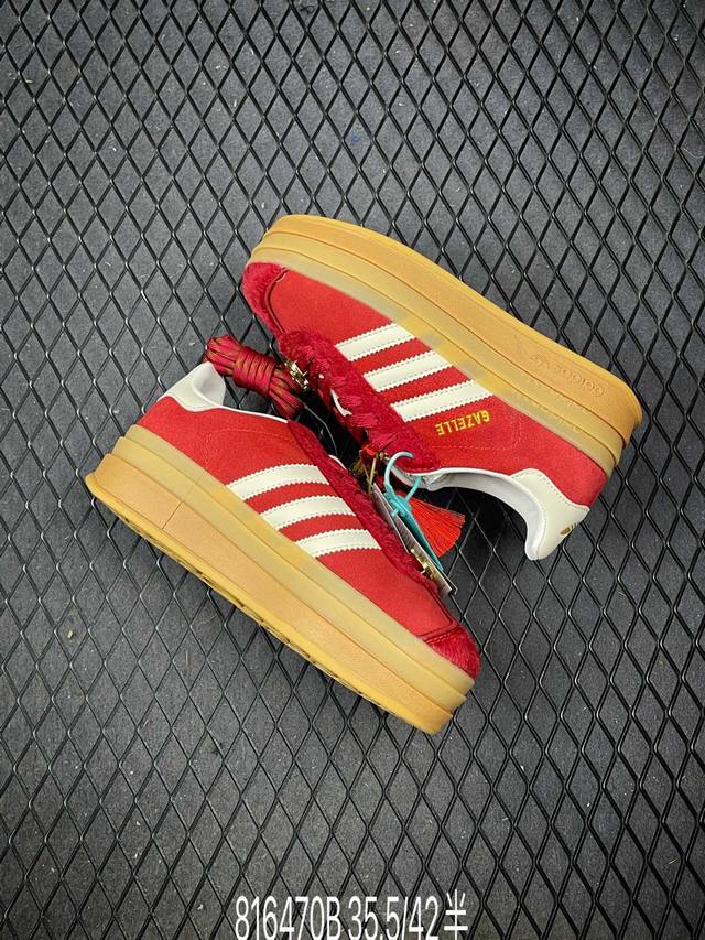 FFF DDD 公司级Adidas Originals Gazelle Bold Cny 马年限定 高热新品 时尚百搭 防滑耐磨 低帮 阿迪达斯 厚底松糕板鞋 DDD 以红色为主 鞋头采用深红色麂皮呈现 整体鞋面辅以马毛是最大的亮点 标志性的三道杠区域采用皮面打造 后跟处带有标志性字样 撞色的搭配使得新年氛围感拉满 DDD 货号:Kj4293 DDD 尺码:35.5 36 36.5 37 38 38.5 39 40 40.5 41 42编码:816470B DDD