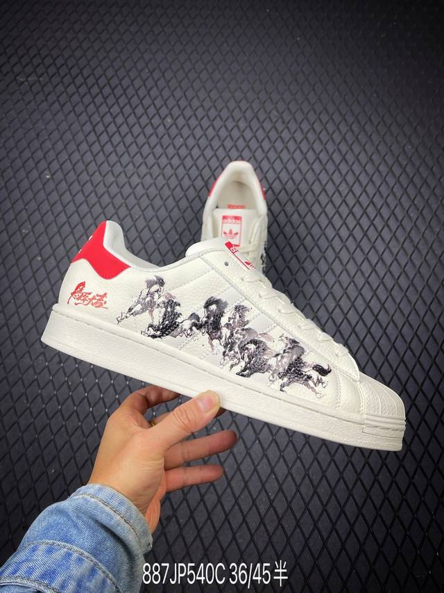 230支持放店 Adidas Originals Superstar Supermodified Shoes 经典贝壳头运动鞋板鞋小白鞋。结合正绒面革和皮革,时
