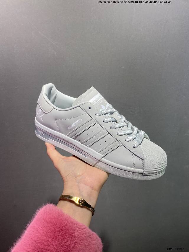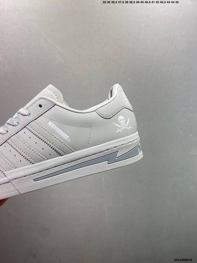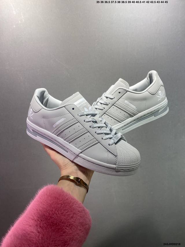 Neighborhood X Adidas Originals Superstar 舒适百搭 防滑耐磨 低帮 板鞋 男女同款 35周年海岛黑联名款 贝壳头系列低帮经典百搭休闲运动板鞋 货号:Id8650