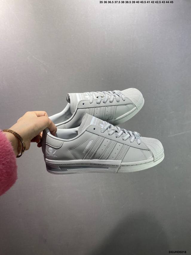 / Neighborhood X Adidas Originals Superstar 舒适百搭 防滑耐磨 低帮 板鞋 男女同款 35周年海岛黑联名款 贝壳头系列低