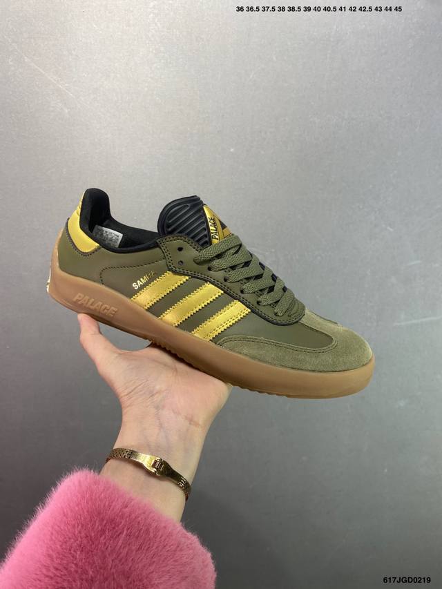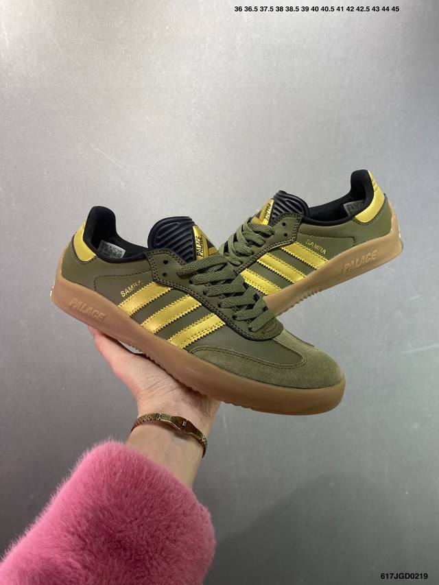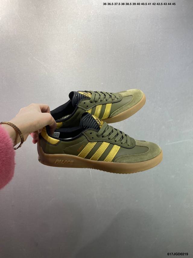 Palace X Ad Originals Puig Samba 货号:Hq6098 Hq6099 Hq6100 作为 Samba 系列的改款,Palace 与 Adidas Originals 的联名如今已经成为潮流圈、球鞋圈独树一帜的象征。双方共计带来三款配色,鞋款设计上后跟的 Palace 彭罗斯三角 Logo 也足够彰显自身的与众不同。Size:36 36.5 37.5 38 38.5 39 40 40.5 41 42 42.5 43 44 44.5 45