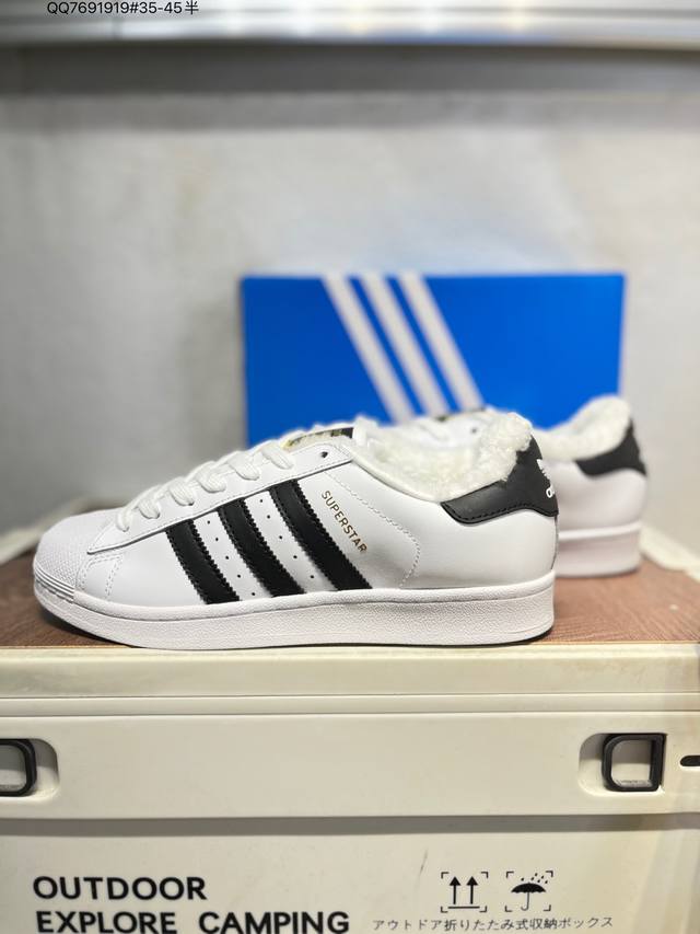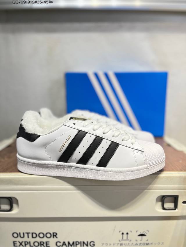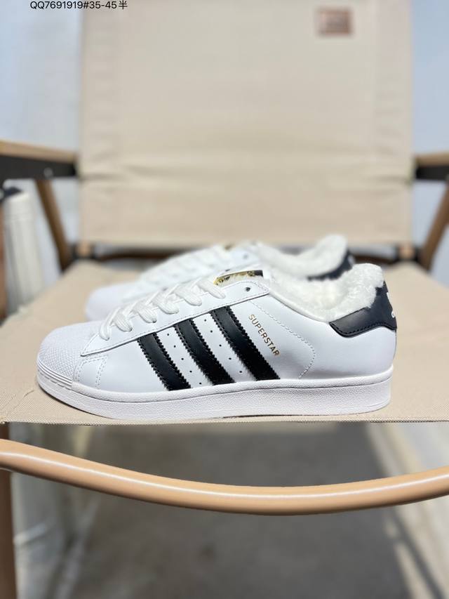 / 加毛款# 阿迪达斯Adidas三叶草 Originals Superstar 贝壳头系列低帮经典百搭休闲运动C77124 Qq7691919#35-45半