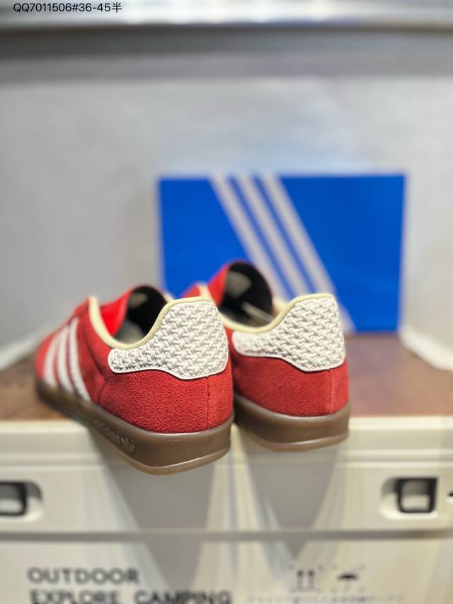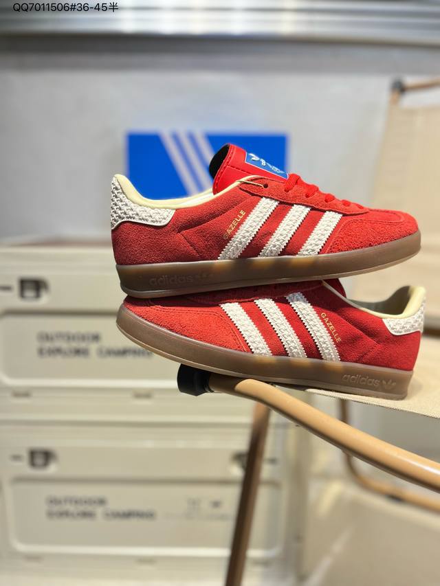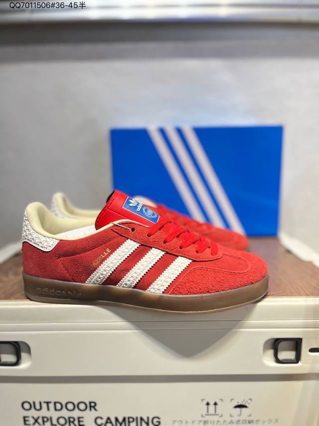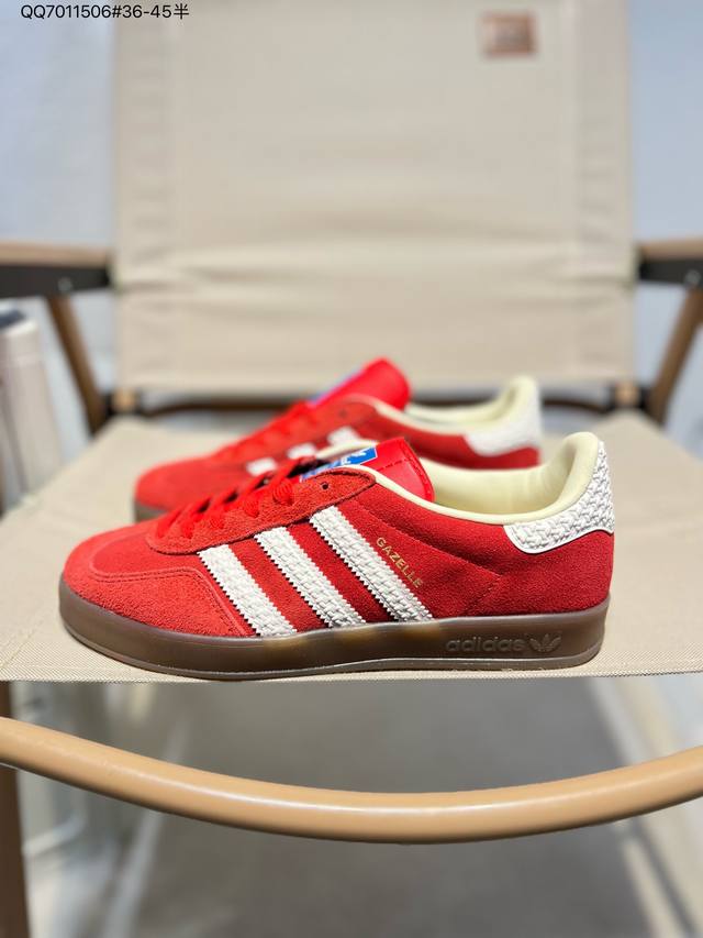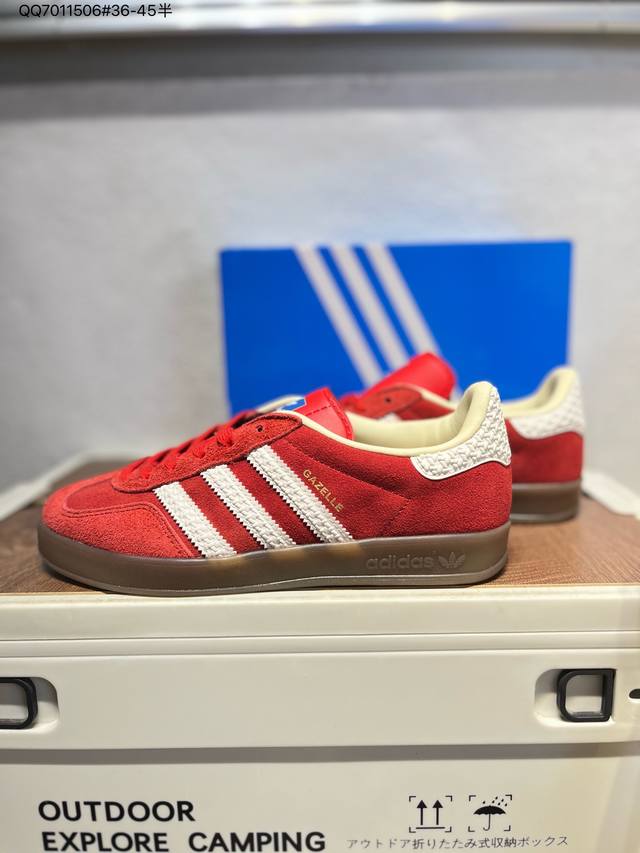 升级原楦原纸版数据开发#采用固色翻毛皮组合纤维革鞋面材质#内环保海玻璃人体工学鞋垫#全新耐磨标准橡胶大底将复古进行到底,阿迪达斯Adidas Gazelle Indoor Trainers 羚羊内训系列低帮复古百搭休闲运动德训风板鞋If1808 Qq7011506#36-45半