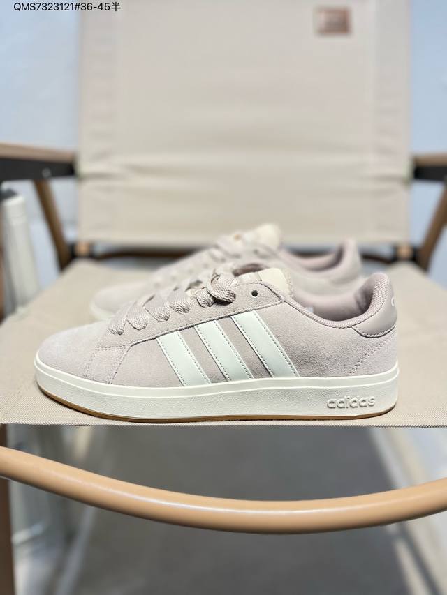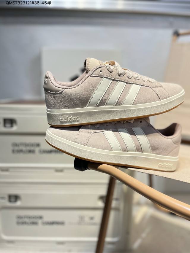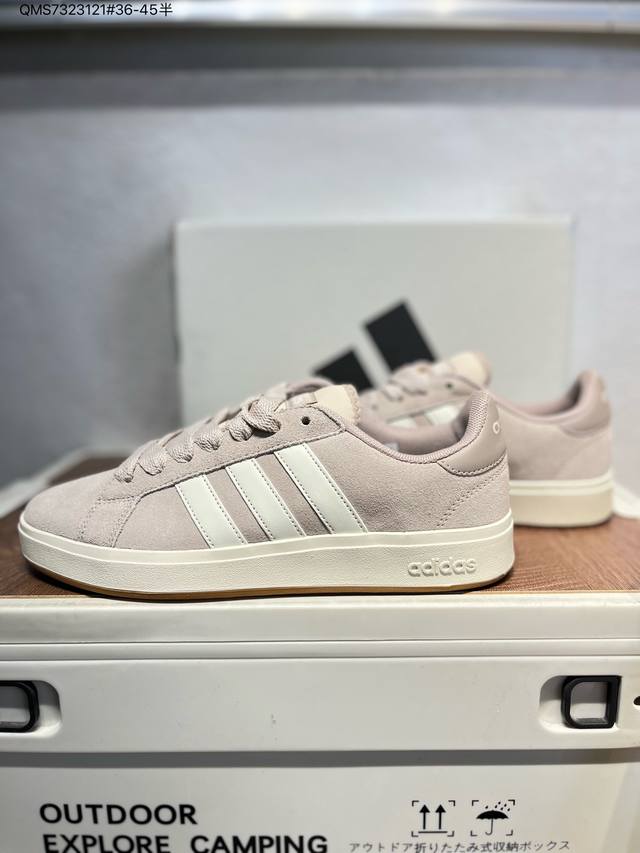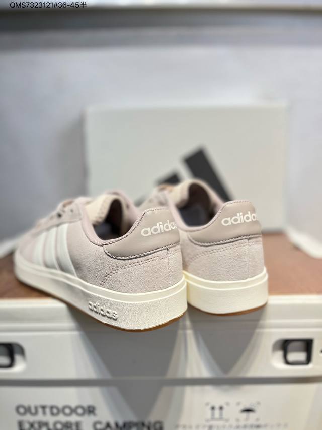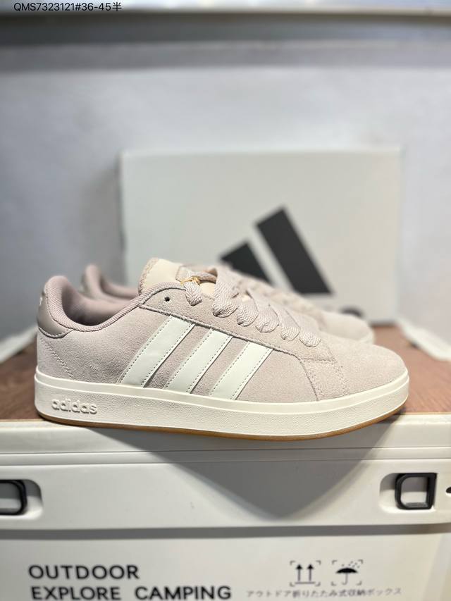原楦原纸版开发#采用翻毛皮组合纤维革饰片鞋面材质#外置耐磨橡胶鞋底出众复古风,出街吸睛力!阿迪达斯Adidas Grand Court Base 00S 格兰德学院系列低帮休闲运动板鞋Jq2721 Qms7323121#36-45半