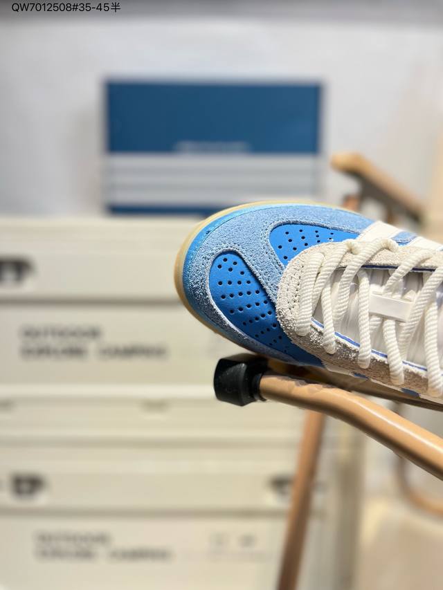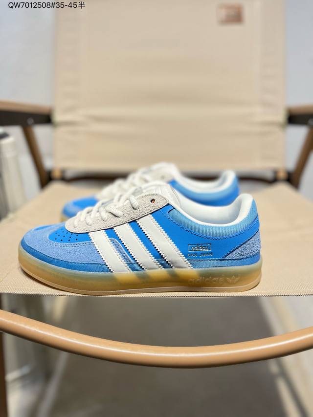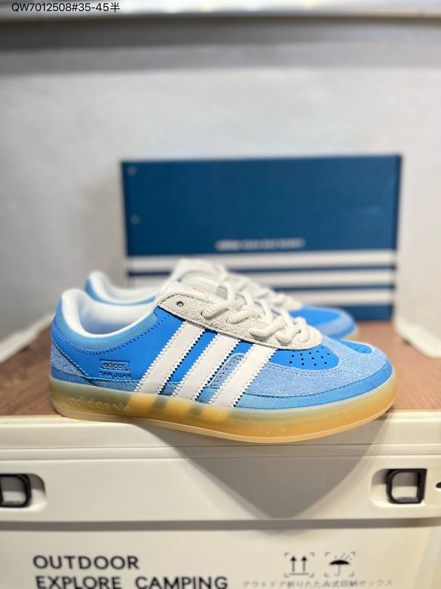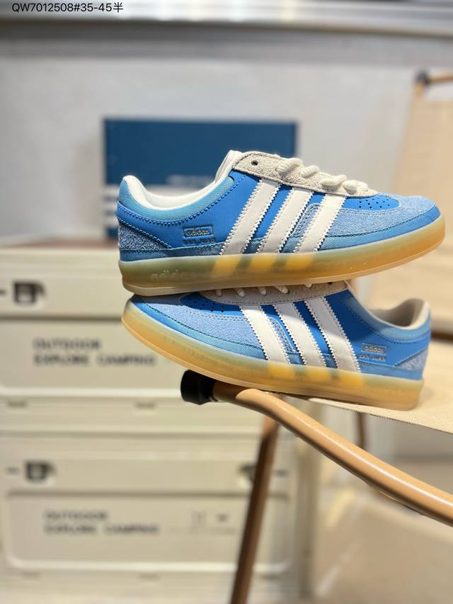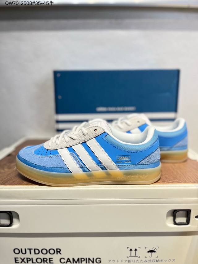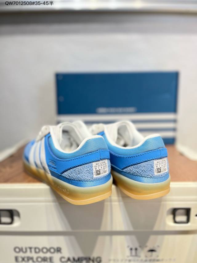 坏痞兔Bad Bunny X Ad Gazelle Indoor Trainers 联名羚羊内训系列低帮复古百搭休闲运动德训风板鞋 If9735 Badbunny本人在杂志拍摄时率先上脚带一波节奏,Emm,手上拿的杂志封面还是Kylie,看来前女友和布克重新约会,这位哥也还是没放下啊...回到鞋款本身,整体选择了简约的黑白皮革搭配浅灰色长绒麂皮材质,最后以半透明生胶大底收尾,质感在线。不同于以往联名的调色盘操作,Bad Bunny对Gazelle Indoor进行了加宽加厚处理,以及鞋头变形的设计,带来全