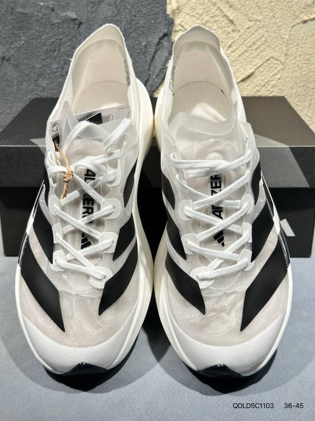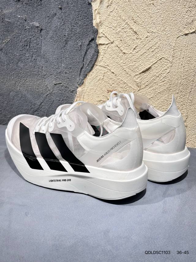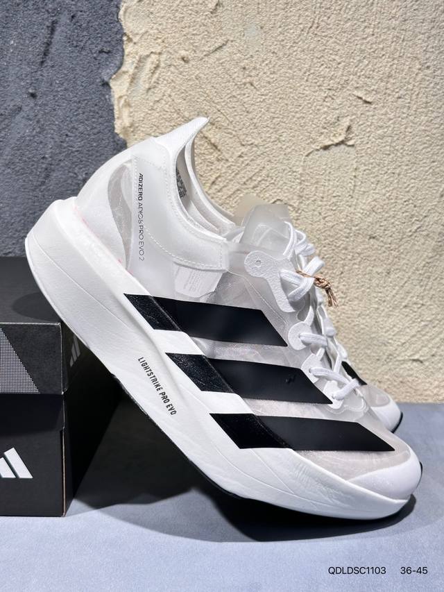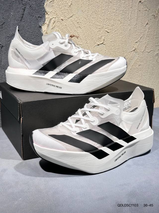 新品上市实拍 #男女鞋半码制#采用呼吸网织物热熔面料材质#中底搭载Lightstrike高密度发泡+前掌单块Lightstrike Pro避震科技#外搭马牌橡胶橡胶防滑底片全新极简设计语言,阿迪达斯Adidas Adizero Eva Sl M Black White 零度进化版系列低帮轻便透气竞速休闲运动慢跑鞋“网织黑白”Ih5564 相信大家对去年 Adidas 横空出世的 顶级超跑 Adizero Adios Pro Evo 1 记忆犹新!不仅登顶阿迪史上最轻跑鞋宝座,更在接下来的全球马拉松赛事中,