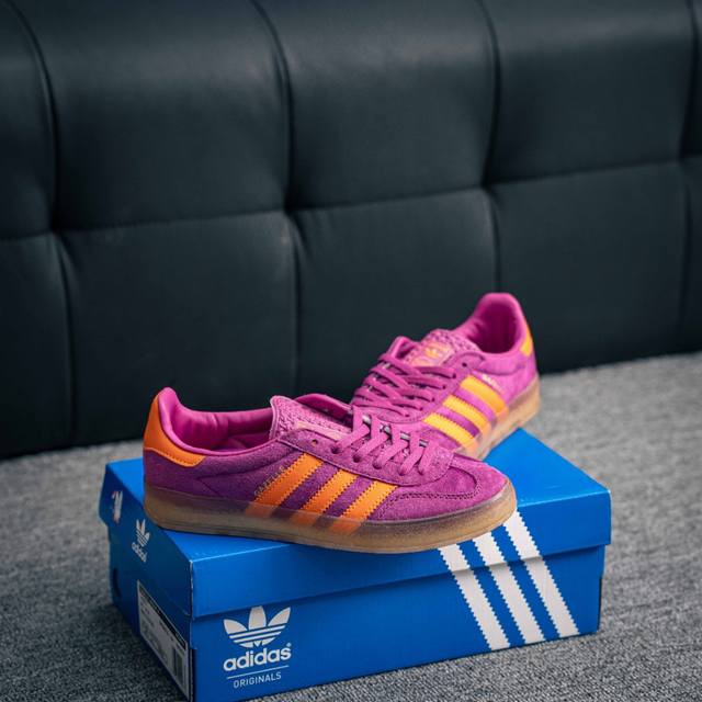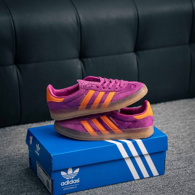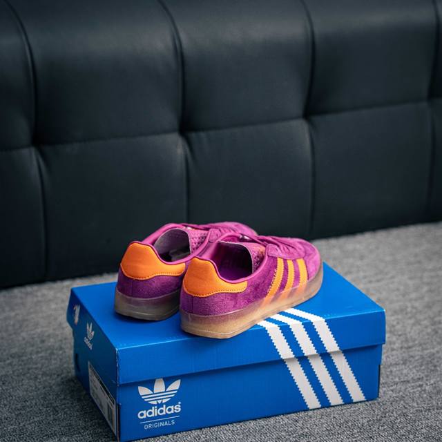 Adidas Originals Gazelle Indoor 三叶草复古防滑耐磨低帮板鞋 鞋款采用柔软的绒面革和耐用的皮革衬里融合在橡胶外底上