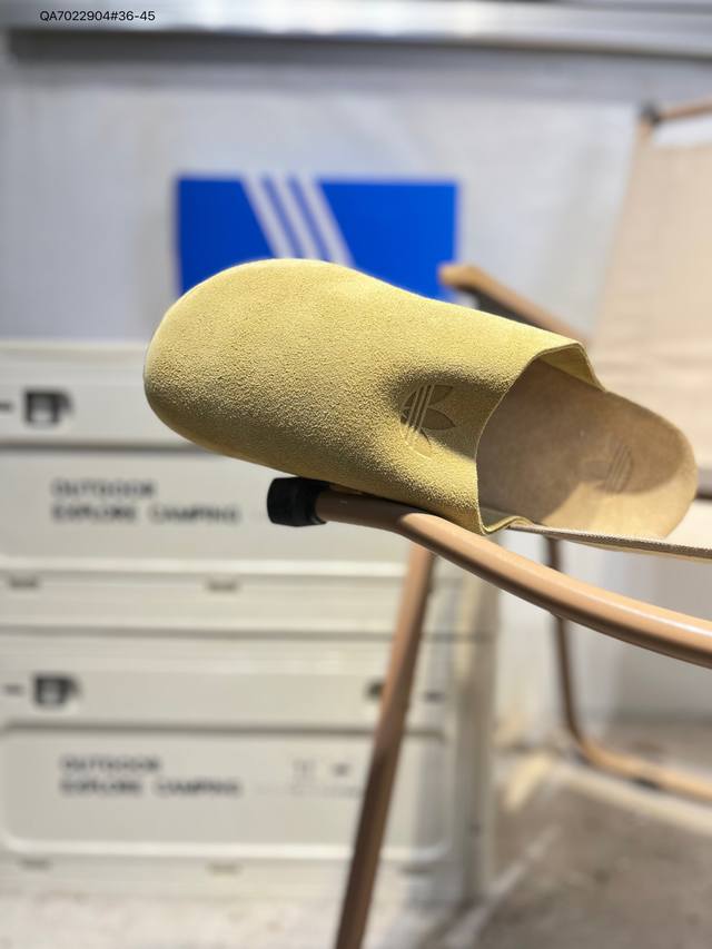 采用翻毛皮里衬鞋面材质#搭载Adifom发泡材质,一体成型设计#软木鞋床组合外置轻量防滑橡胶外底 复古舒适,百搭之选!全新阿迪达斯Adidas Originals Adimule 阿迪穆勒系列勃肯穆勒风牛皮绒面革复古软木底包头露跟休闲鞋“咖啡棕”Js0705 Qa7022904#36-45 DDD