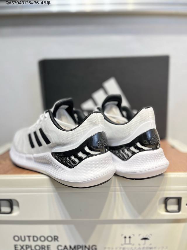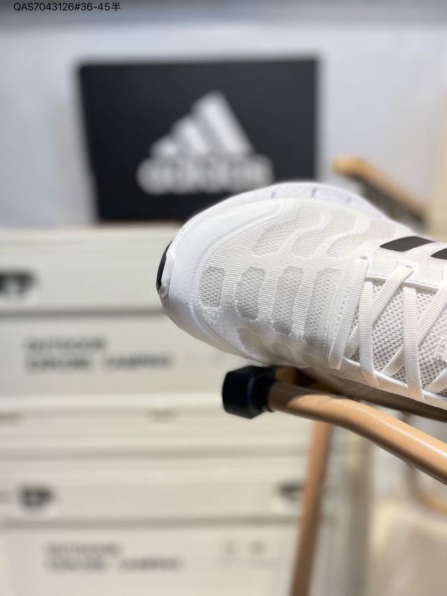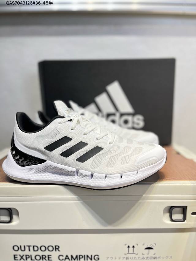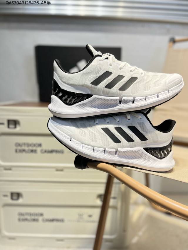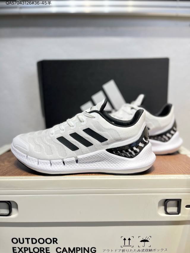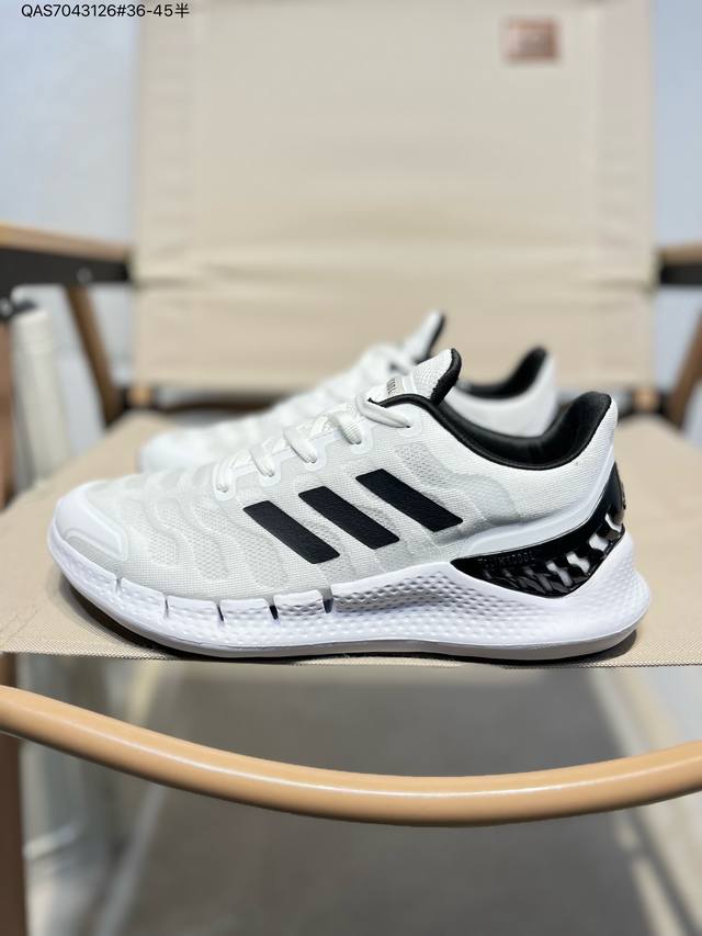 采用超轻透气针织物鞋面材质#中底镂空式轻量减震Md物料#外置防滑耐磨橡胶底片全新阿迪达斯Adidas Climacool M 清风高弹系列超轻量休闲运动慢跑鞋“白黑”Fw1221 Qas7043126#36-45半