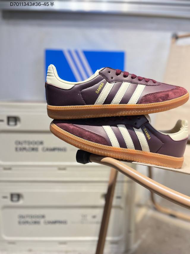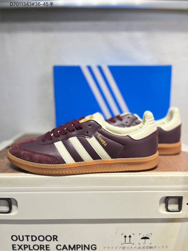核心私 adidas Samba Og 桑巴舞街头系列德训运动板鞋 采用固色翻毛皮组合牛剖革鞋面材质 外置正确3层组合围条加厚烟胶橡胶大底...