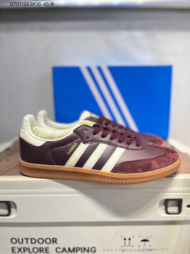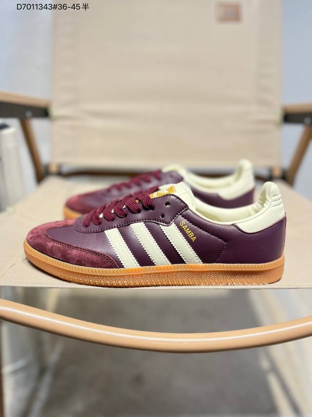 核心私 Adidas Samba Og 桑巴舞街头系列德训运动板鞋 采用固色翻毛皮组合牛剖革鞋面材质 外置正确3层组合围条加厚烟胶橡胶大底...