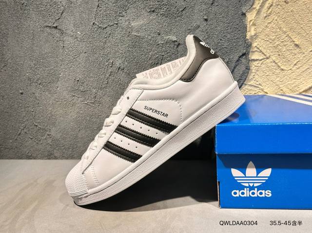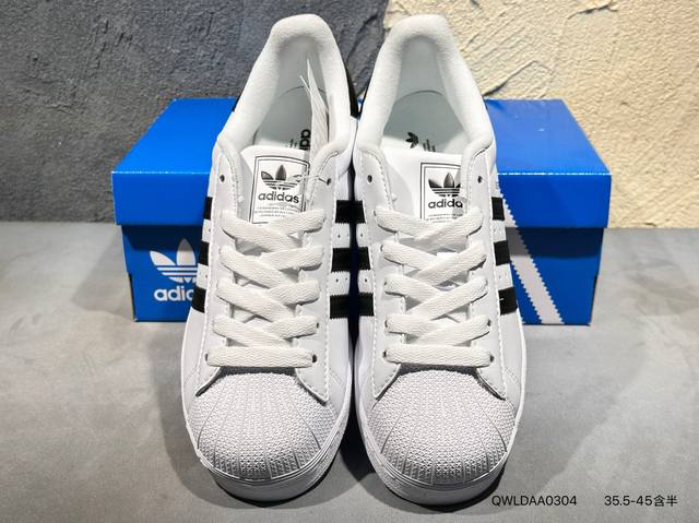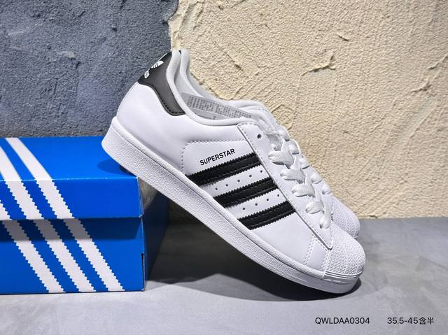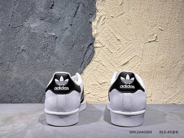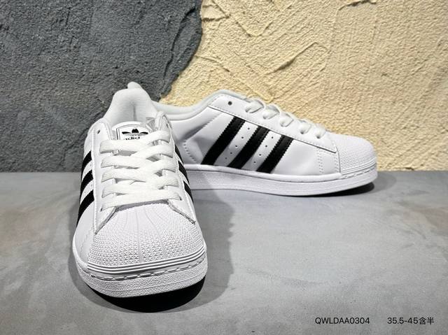 阿迪达斯 Adidas Superstar 三叶草经典贝壳头系列 新款休闲板鞋潮流男女士运动鞋 。鞋面柔软皮革材质 标志性的贝壳鞋头,锯齿三条纹,简约的线条。就连版型和比例,都在向1982年的鞋款致敬。可谓“形神兼备”的复刻。无论在哪,无论去哪,你或许都需要这样一双既舒适又时尚的鞋。1970年问世于篮球场的Adidas Superstar,集舒适与时尚于一身。这款经典鞋,缀低调图案,灵感源自公共交通地图。设计简约,旨在伴你出行。心动不如行动,系好鞋带,出发吧。
