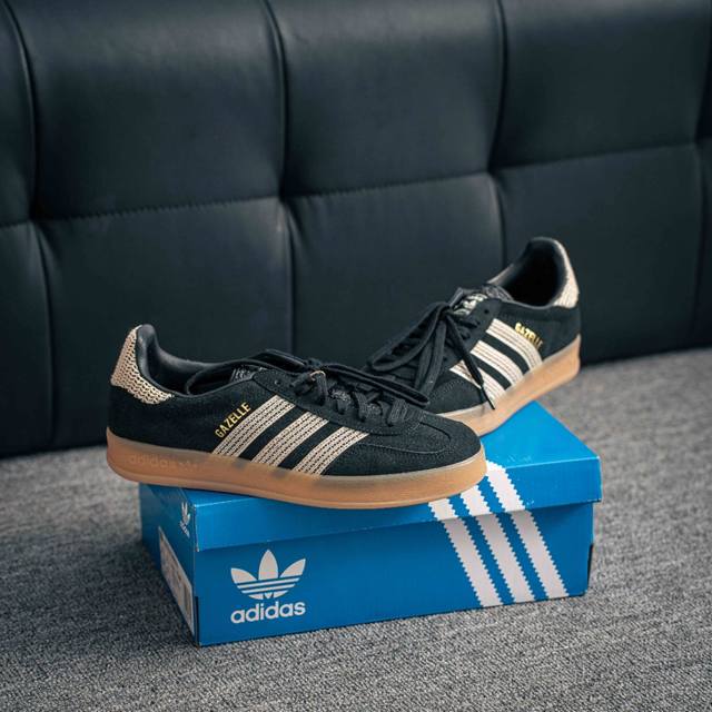 Adidas Originals Gazelle Indoor 三叶草复古防滑耐磨低帮板鞋 鞋款采用柔软的绒面革和耐用的皮革衬里融合在橡胶外底上