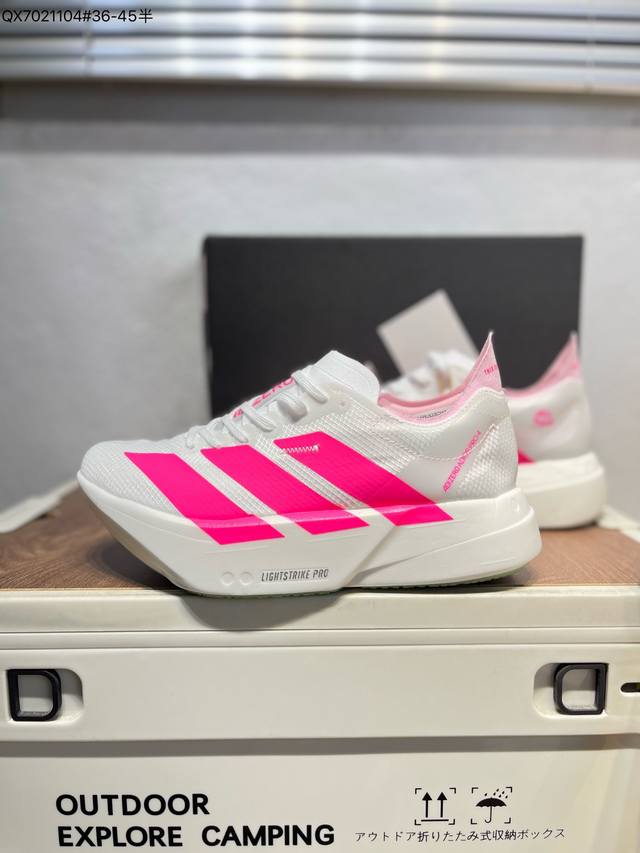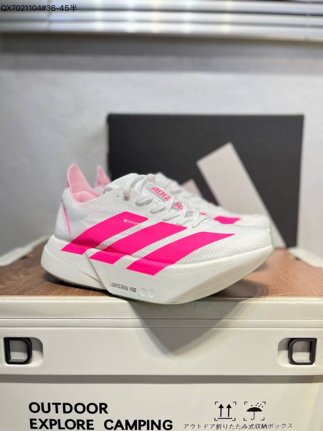 #升级原楦原纸版开发#采用轻质单向弹性梭织鞋面材质#中底搭载Lightstrike高密度发泡+前掌单块Lightstrike Pro避震科技#外搭马牌橡胶橡胶防滑底片全新极简设计语言,阿迪达斯Adidas Adizero Adios Pro Evo 4"Ekiden Pack"零度平安进化版4系列低帮轻便透气竞速休闲运动慢跑鞋