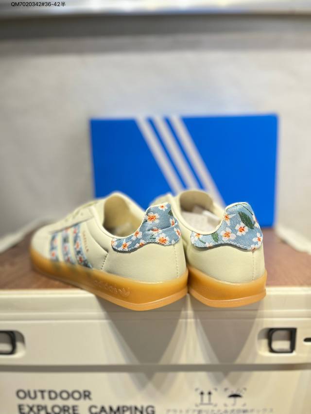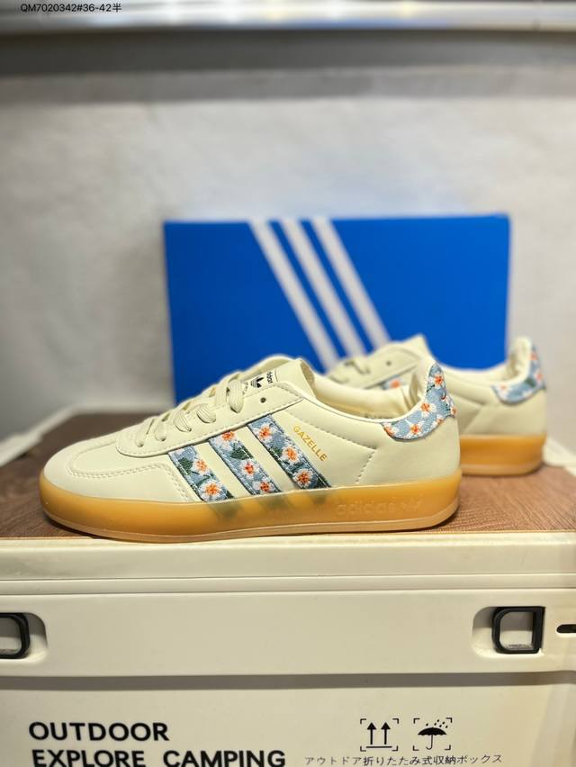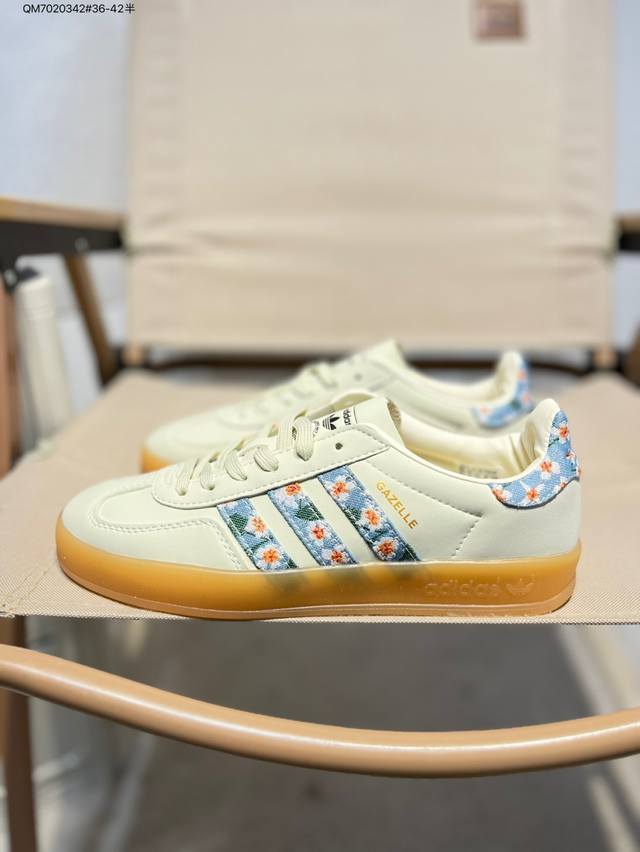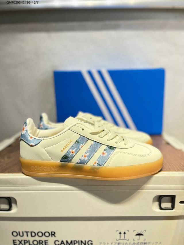 Adidas 阿迪达斯 德训系列 男女鞋半码制,升级原楦开发版型,采用翻毛皮鞋面材质,内环保海玻璃鞋垫,外置Rb橡胶大底将复古进行到底,阿迪达斯Adidas Gazelle Indoor Trainers 羚羊内训系列低帮复古德训风百搭休闲运动板鞋Jr3601 Qm7020342#36-42半