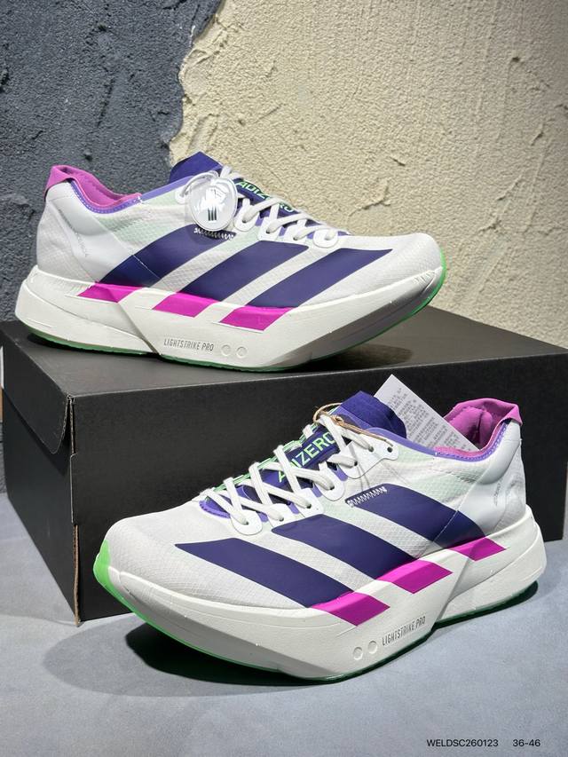 FFF Adidas Adizero Adios Pro 4M 马拉松飞线贾卡轻质透气休闲运动跑步鞋 DDD 采用双层透气网纱 Flywire动态飞线绑缚鞋面材质 内置Zoom小气垫装置 DDD 货号:Jr1656 Weldsc260123 DDD