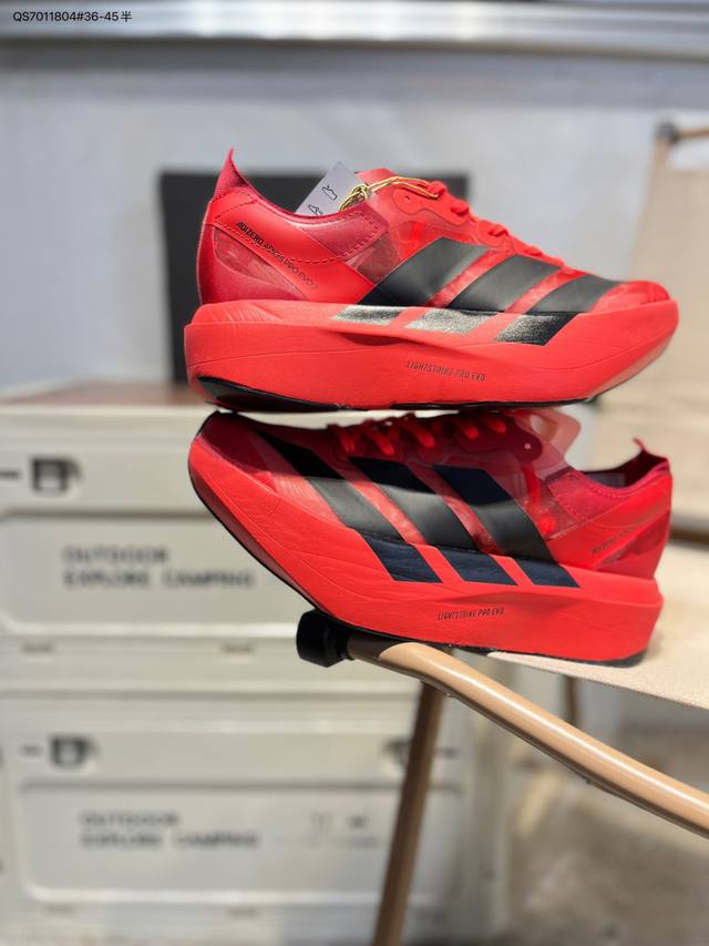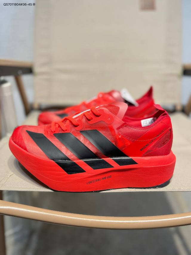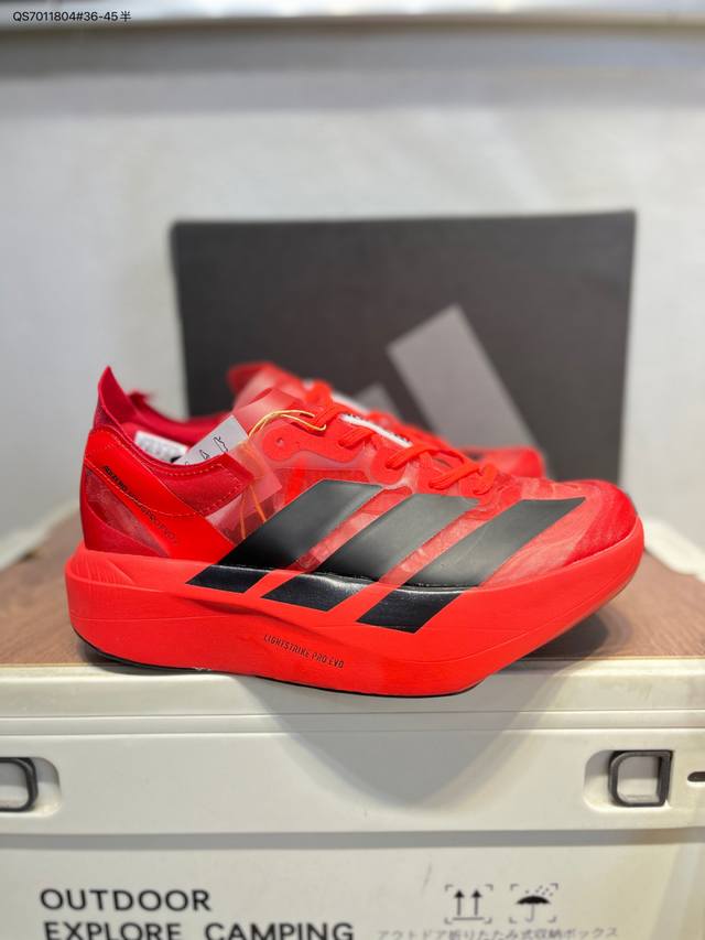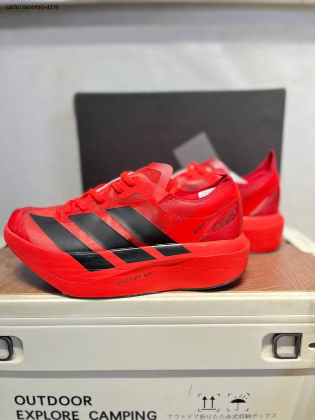 FFF Adidas Adizero Pro Evo 2阿迪超轻透气缓震跑鞋 DDD 整体外观造型与Adizero Adios Pro Evo 1非常相似 中底配置方面搭载全掌Lightstrike Pro DDD 鞋面采用透气网面示人 契合日常训练鞋的定位 更加耐用 DDD 外底给到了马牌橡胶 及上代竞速旗舰Adidas Adizero Adios Pro 3区域分布Ih5579 Qs7011804#36-45半 DDD