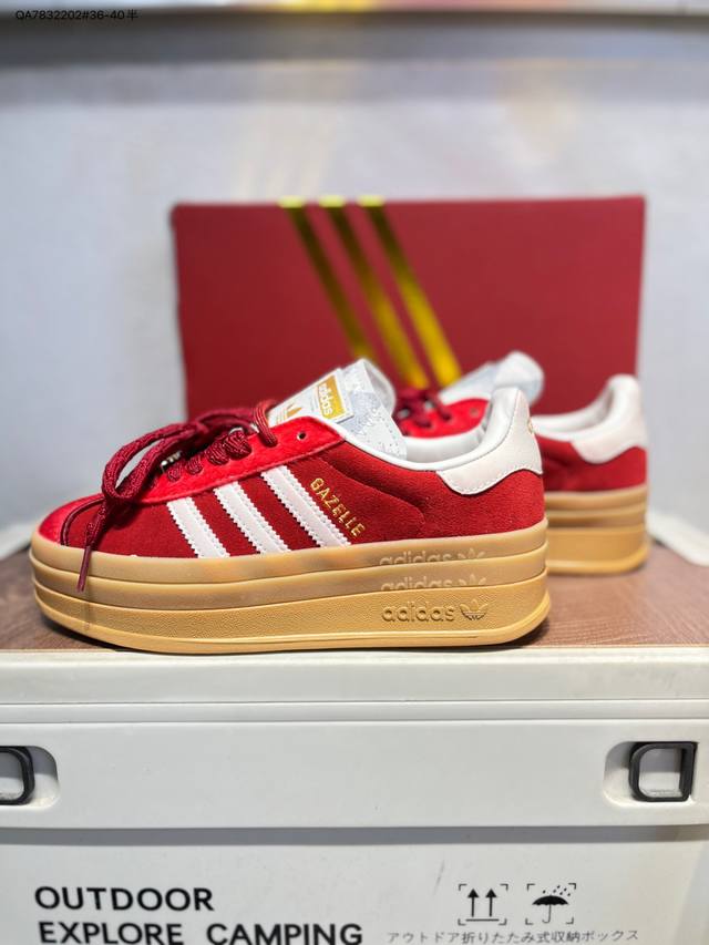 FFF Adidas Originals Gazelle Cny新年款 马年限定 经典运动 德训鞋 女款 红色羚羊松糕系列复古百搭厚底增高低帮休闲运动板鞋 Kj4293 DDD 最好穿最百搭的长腿神器。 不仅价格P不错~鞋子也不错啊!Originals的Gazelle Bold鞋款打造出 超厚底版本 !延续流线鞋型、经典麂皮材质、白色三条线和侧面烫金标志的复古外型,奶油白鞋底高度直接乘3,出门搭上它,保证一路步步高升。 DDD 货号:Kj4293 Qa7832202#36-40半 DDD