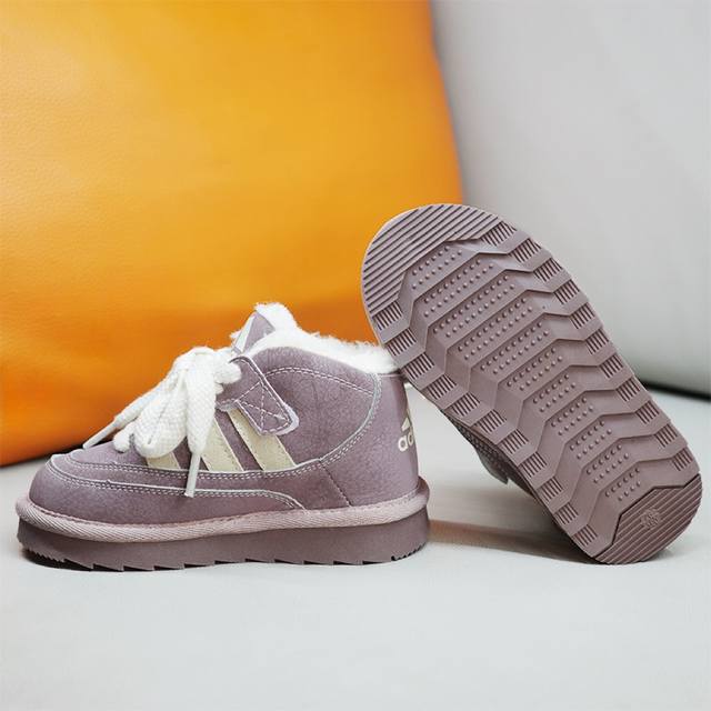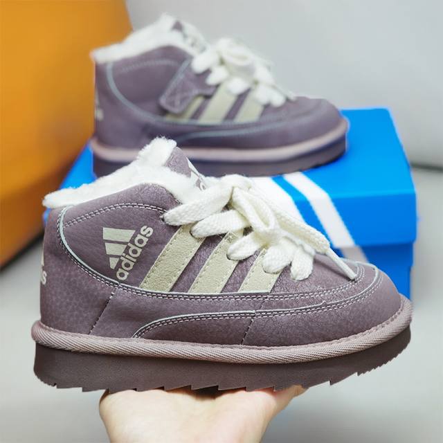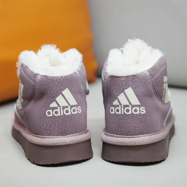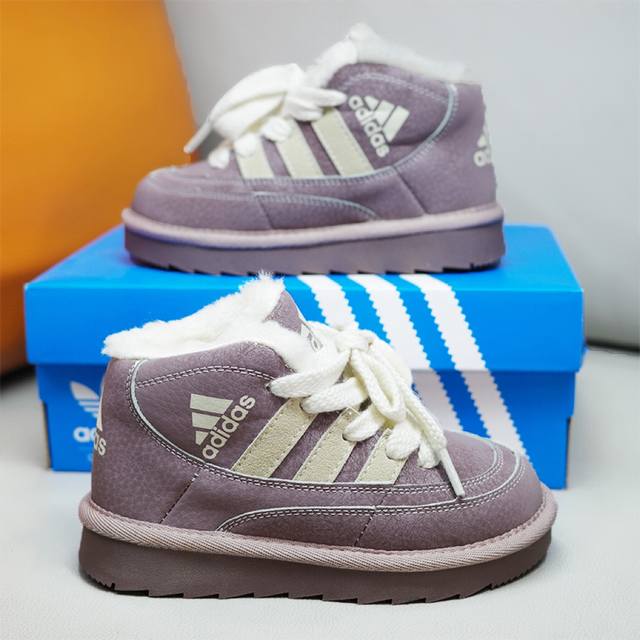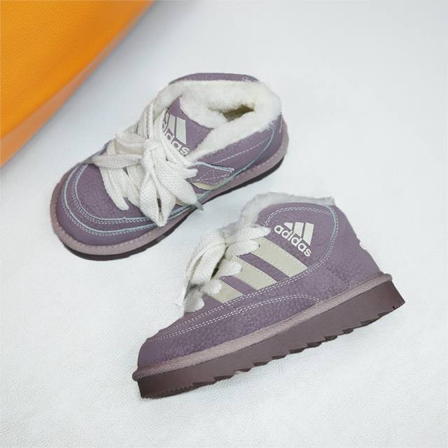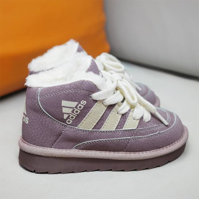 / 阿迪达斯 鲨鱼面包鞋雪地靴加绒 魔术贴粘扣系带儿童雪地靴 最新款内里加绒加厚超级暖和,Adimatic中高帮滑板鞋鞋底超级防滑耐磨 2色:黑色 紫色 尺码:27