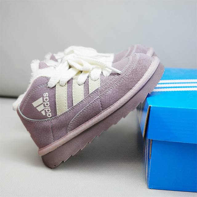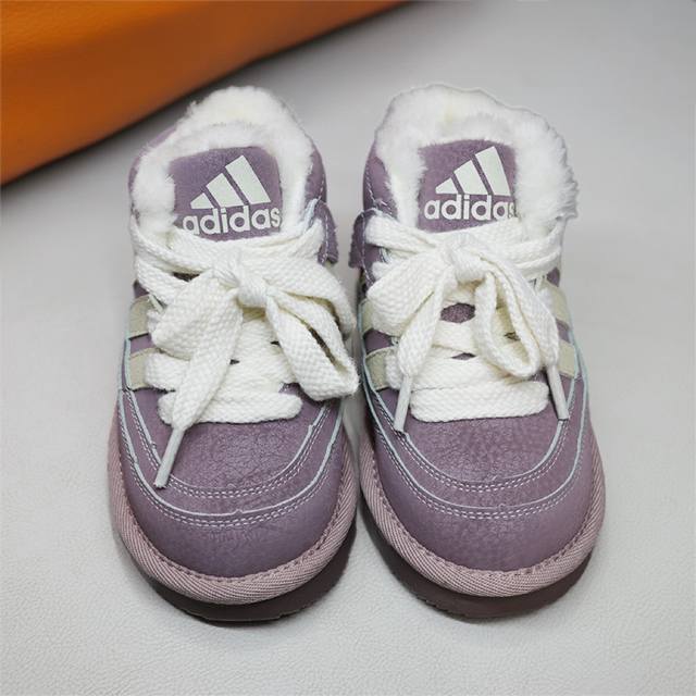 阿迪达斯 鲨鱼面包鞋雪地靴加绒 魔术贴粘扣系带儿童雪地靴 最新款内里加绒加厚超级暖和,Adimatic中高帮滑板鞋鞋底超级防滑耐磨 2色:黑色 紫色 尺码:27