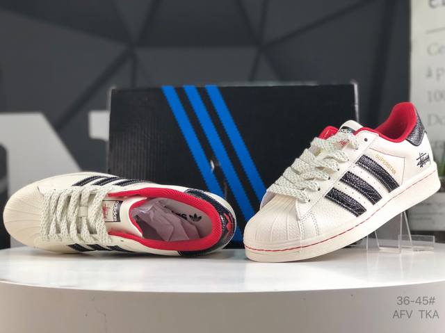 公司级带半码 阿迪达斯 三叶草Adidas Originals Superstar 经典贝壳头系列低帮百搭休闲运动板鞋Supreme限定