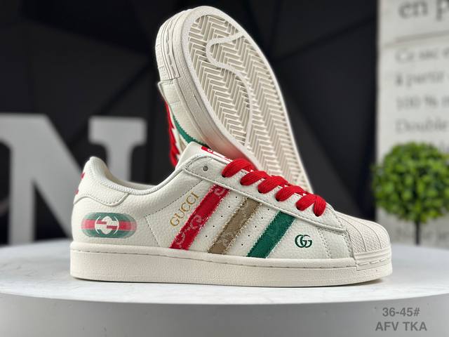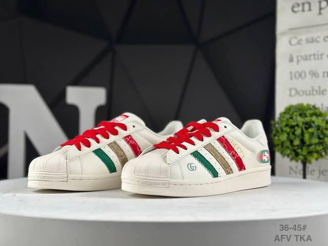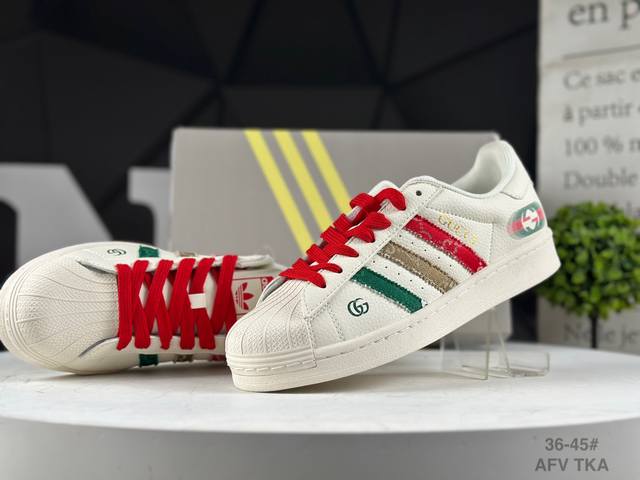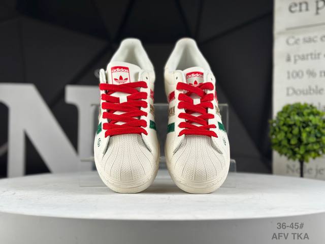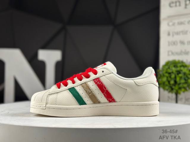 公司级 阿迪达斯 三叶草Adidas Originals Superstar 经典贝壳头系列低帮百搭休闲运动板鞋Supreme限定 货号: Qc 1 尺码:36