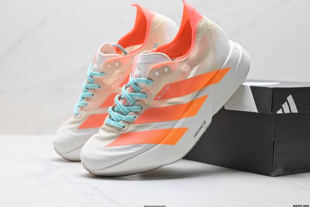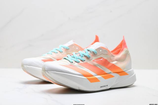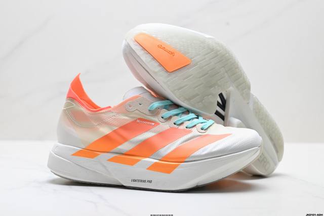 公司级Adidas Adizero Adios pro 4 M马拉松飞线贾卡轻质透气休闲运动跑步鞋 采用双层透气网纱 Flywire动态飞线绑缚鞋面材质 内置Z
