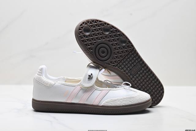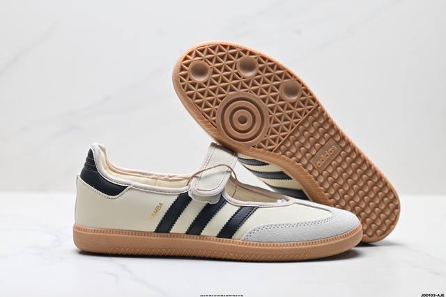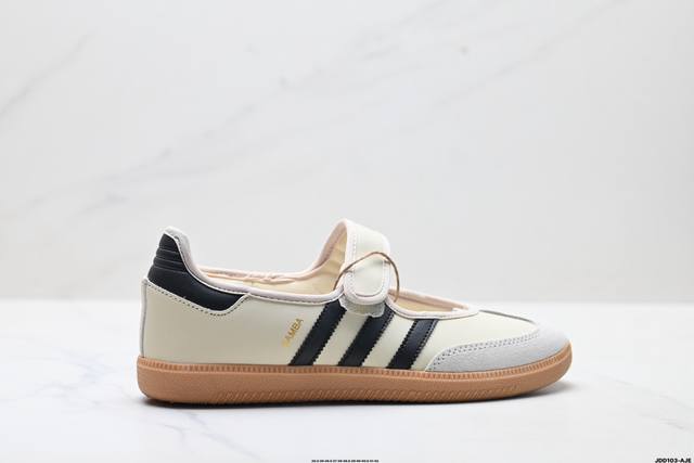 公司级Adidas Samba Jane 阿迪达斯 玛丽珍款 板鞋懒人一脚蹬运动鞋 DDD 采用皮革材质的设计融合了经典与现代元素 DDD 它采用了玛丽珍鞋的特色设计 如鞋面上的扣带和环扣装饰 同时保留了Samba鞋的经典三道杠设计和橡胶大底 这款鞋的鞋型修长 中足偏窄 整体贴合感强 适合标准脚型和宽脚型的人群 DDD 货号:Jr4482 DDD 尺码:35.5 36 36.5 37 38 38.5 39 40 40.5 41 42 DDD Ld:Jdd103-Aje DDD