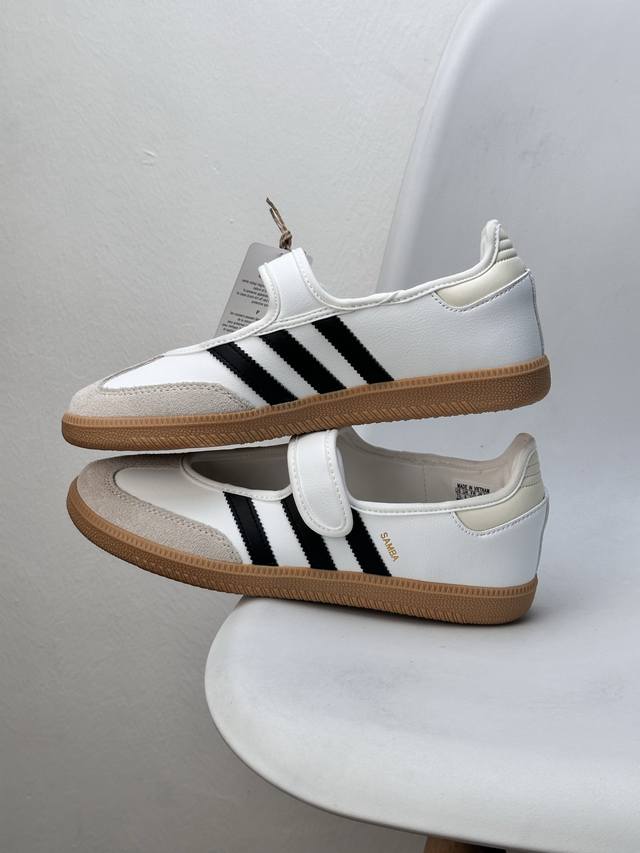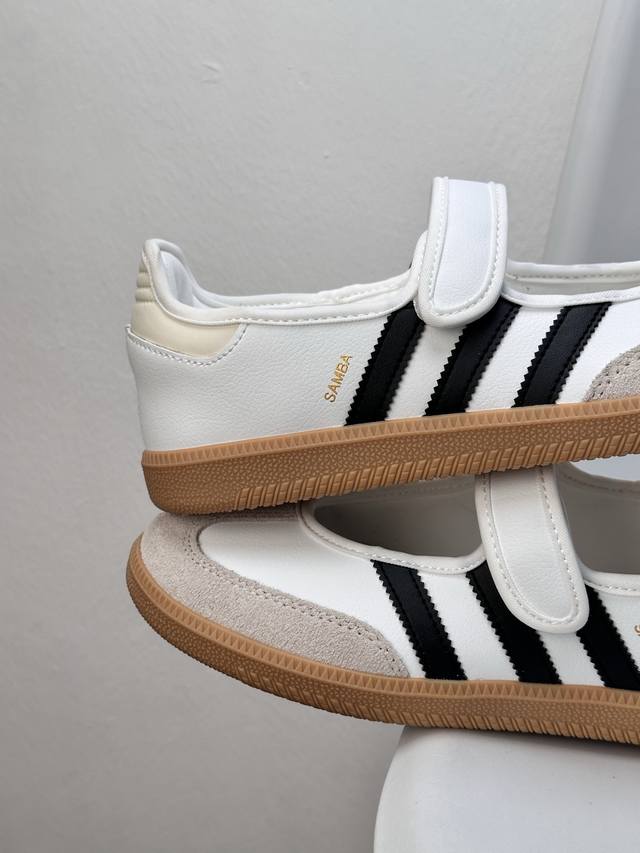 采用纤维牛剖革组合翻毛皮鞋面材质#内环保可再生海玻璃鞋垫#外置Rb耐磨防滑橡胶大底带你回味最原始的永远经典,阿迪达斯 三叶草Adidas Originals Og Jane 桑巴舞玛丽珍系列复古魔术贴德训足球风百搭低帮休闲运动板鞋Lw“白黑生胶底”Jr 2