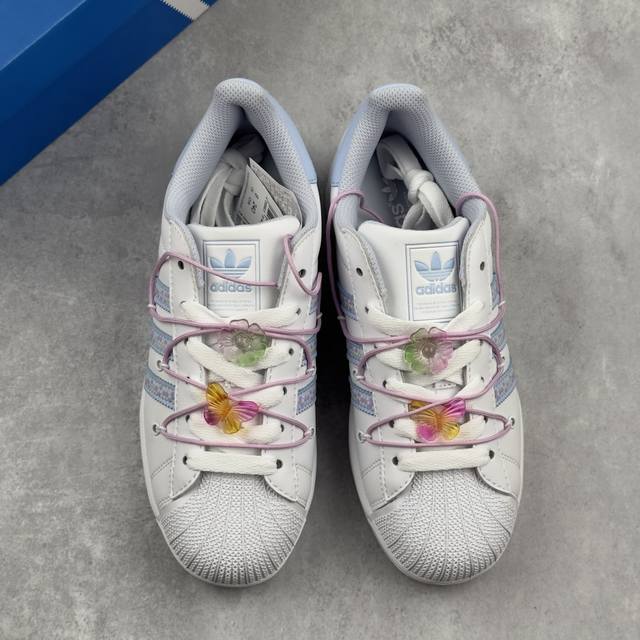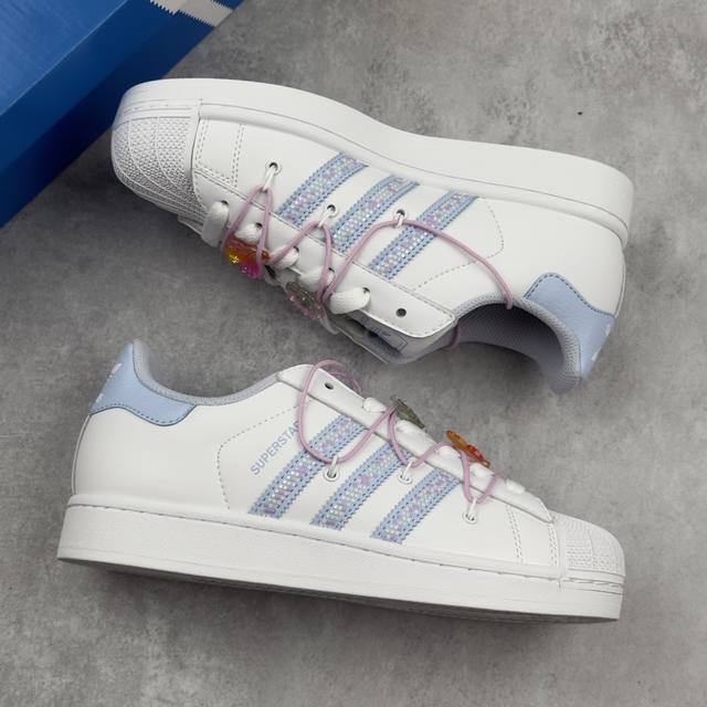 阿迪达斯 三叶草Adidas Originals Superstar Ii Light Blue 经典贝壳头系列低帮百搭休闲运动板鞋“皮革白淡蓝绑绳”