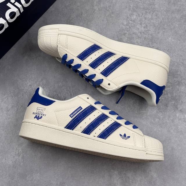 阿迪达斯 Adidas Originals Superstar X Burbrry 白蓝 低帮百搭休闲运动板鞋