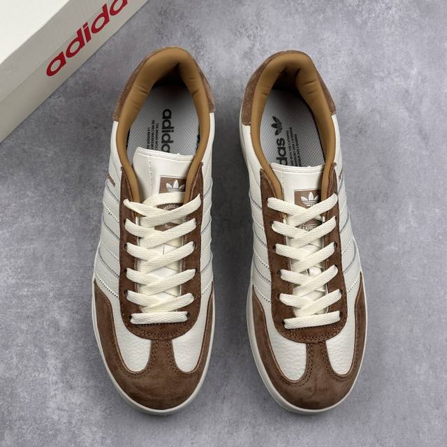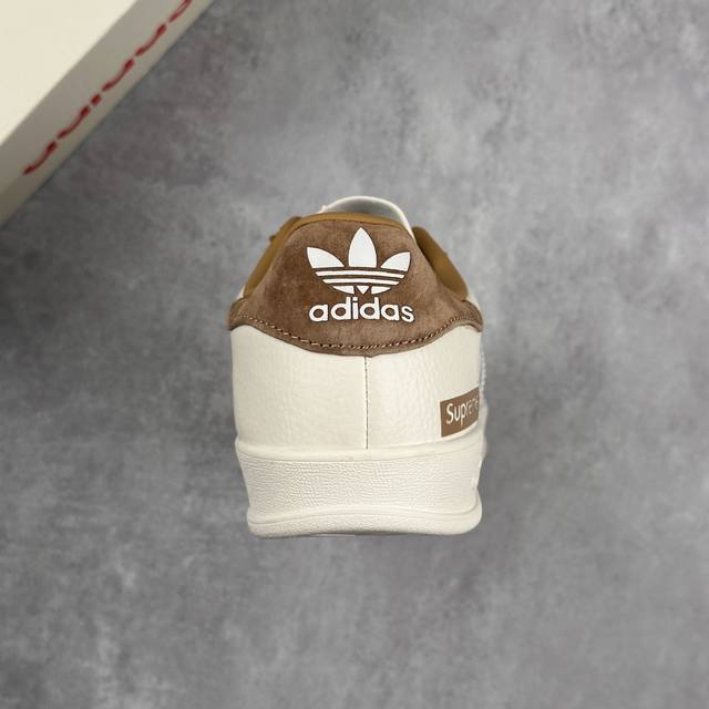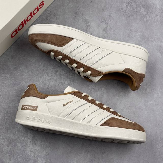 本地 核心私 supreme X Adidas Original Samba Og 阿迪达斯 低帮 联名棕白 桑巴防滑耐磨轻便板鞋 鞋身整体采用米白色皮革打造