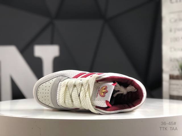 以复古篮球鞋的外形为基础 采用皮革拼接简约百搭 更加贴合舒适 中底内侧网格造型起到点睛之笔 外底橡胶 更显复古