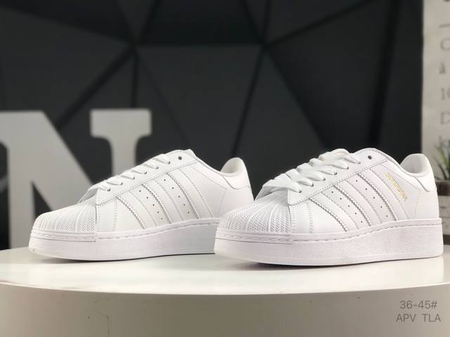 真标带半码Adidas Originals Superstar Xlg 贝壳头系列低帮厚底松糕经典百搭休闲运动板鞋