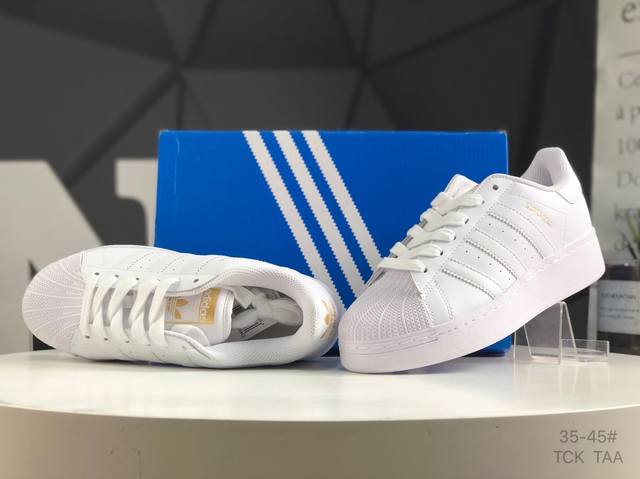 真标带半码Adidas Originals Superstar Xlg 贝壳头系列低帮厚底松糕经典百搭休闲运动板鞋