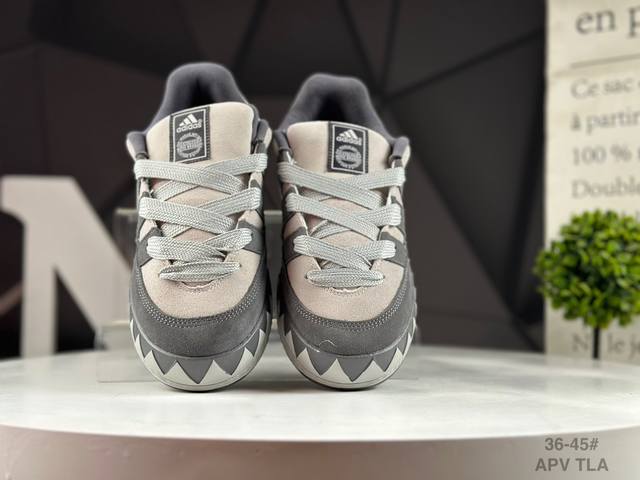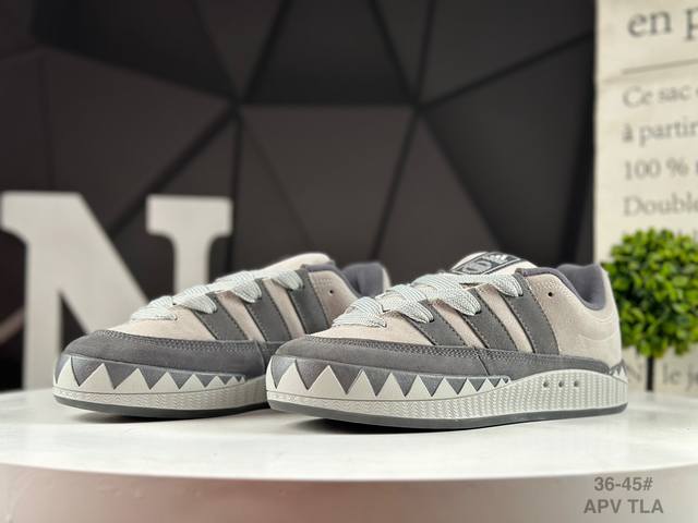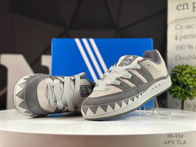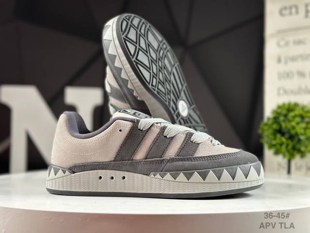 / 真标阿迪达斯 鲨鱼面包鞋 新联名开启,日本知名球鞋店铺Atmos X Adidas Adimatic Low马蒂奇系列低帮复古鲨鱼面包休闲运动休闲滑板板鞋 货号