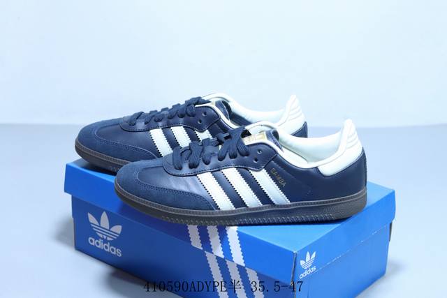 / 阿迪达斯三叶草Adidas Originals Samba Vegan Og”Spd“桑巴舞系列绅士德训足球风百搭低帮休闲运动板鞋 海蓝 货号 Id2056 4