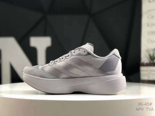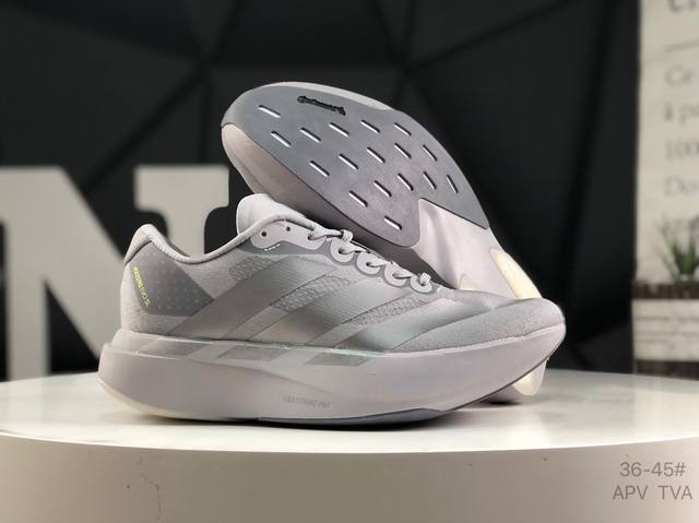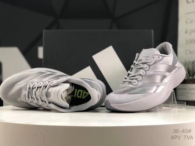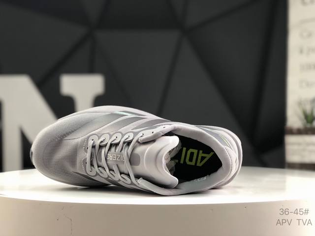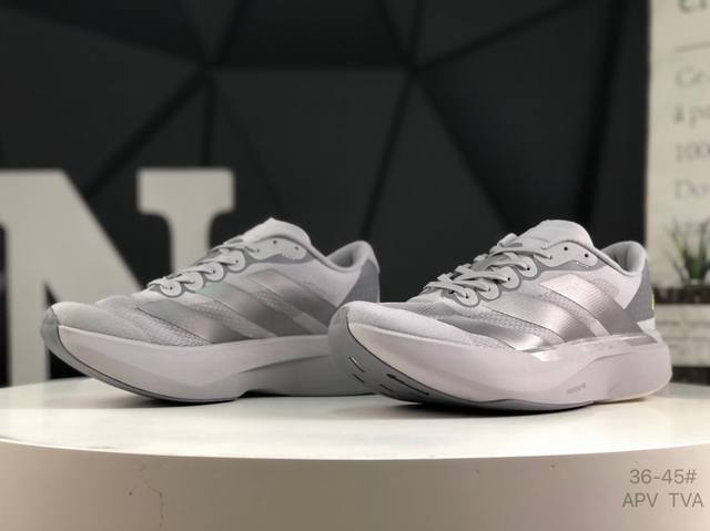 阿迪达斯 Ad Adizero Eva Sl M 零度进化版系列低帮轻便透气竞速休闲运动慢跑鞋 相信大家对去年 Adidas 横空出世的 顶级超跑 Adizero Adios pro Evo 1 记忆犹新!不仅登顶阿迪史上最轻跑鞋宝座,更在接下来的全球马拉松赛事中,持续书写着惊人成绩,被网友戏称新一代 阿迪神鞋 全网刷屏!极简设计语言与强烈速度感和存在感的鞋侧三线,让人过目不忘,特别种草!其中定位于中长跑训练的 Adidas Adizero Evo Sl,整体外观造型与 Adizero Adios pro