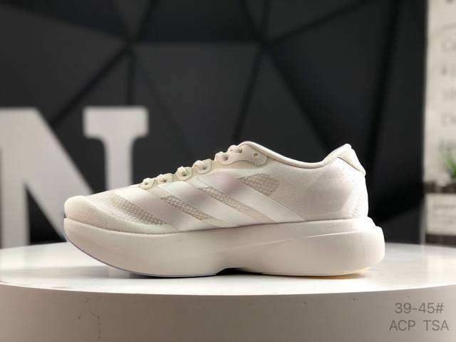 阿迪达斯 Ad Adizero Eva Sl M 零度进化版系列低帮轻便透气竞速休闲运动慢跑鞋 相信大家对去年 Adidas 横空出世的 顶级超跑 Adizero Adios pro Evo 1 记忆犹新 不仅登顶阿迪史上最轻跑鞋宝座 更在接下来的全球马拉松赛事中 持续书写着惊人成绩 被网友戏称新一代 阿迪神鞋 全网刷屏 极简设计语言与强烈速度感和存在感的鞋侧三线 让人过目不忘 特别种草 其中定位于中长跑训练的 Adidas Adizero Evo Sl 整体外观造型与 Adizero Adios pro