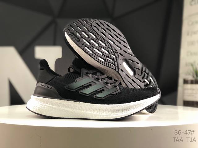 阿迪达斯 Ad Ultra Boost Light Ub10.0 系列低帮袜套式针织透气缓震休闲运动慢跑鞋 历经10年不断创新以科技重塑跑步推出全新超轻新科技跑鞋 力求为跑步添活力 搭载Light Boost中底的新鲜演绎 无论节奏快慢、距离长短 伴你活力畅跑 延续了该系列的设计语言 采用分区编织鞋面 鞋头处网眼孔洞更大 提升透气性 一体式鞋舌 避免运动中出现偏移 实现鞋脚一体性 鞋侧 Tpu 材质 有效提供支撑性 镂空的设计 同时减轻整体重量 最明显的则是中底部分 不仅是厚度夸张 大家最熟悉的 Boos