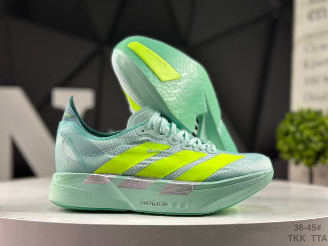 公司级Adidas Adizero Adios Pro 4M 马拉松飞线贾卡轻质透气休闲运动跑步鞋 采用双层透气网纱 Flywire动态飞线绑缚鞋面材质 内置Z