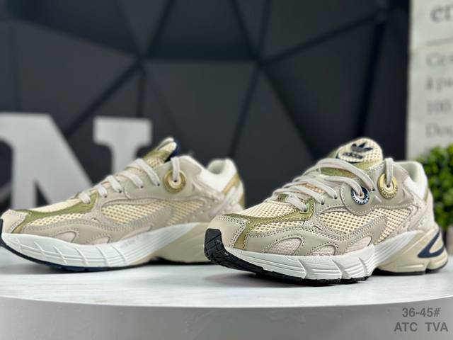 阿迪达斯 Adidas Originals Astir W 阿斯蒂尔系列老爹风复古透气缓震休闲运动慢跑鞋 原楦开发版型采用牛剖革组合透气网织布鞋面材质搭载Tor