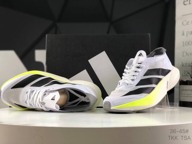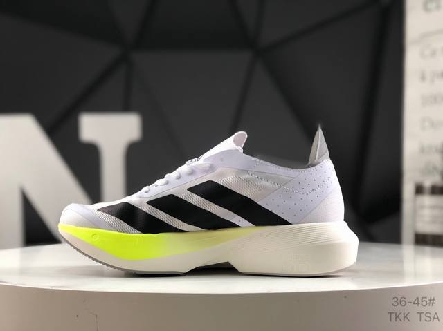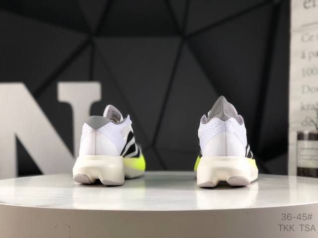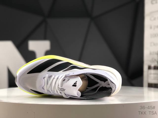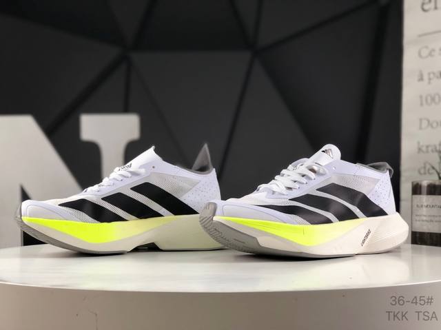 阿迪达斯 Adizero Drive Rc 竞训跑鞋 厚底**运动鞋 简版波士顿跑步鞋 老爹鞋,全新中底材料:采用更轻、更回弹的新材料,提升跑步时的能量反馈和舒适度。改进缓震系统:优化缓震结构,提供更精准的落地支撑和减少运动伤害的风险。流线型鞋身:采用更贴合脚型的流线型设计,减少空气阻力,提升跑步效率。透气材料:引入更先进的透气网眼材料,保持脚部干爽,适合长时间运动。更多配色选择:推出多种新配色,满足不同消费者的个性化需求。可持续材料:使用更多回收和可再生材料,减少环境影响。包装减塑:简化包装,减少塑料使