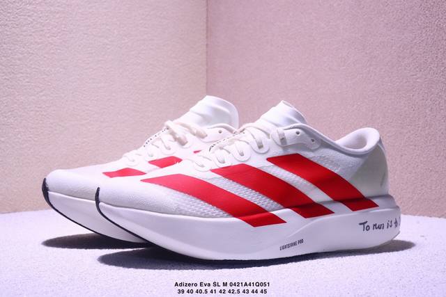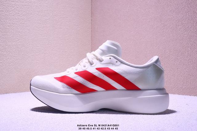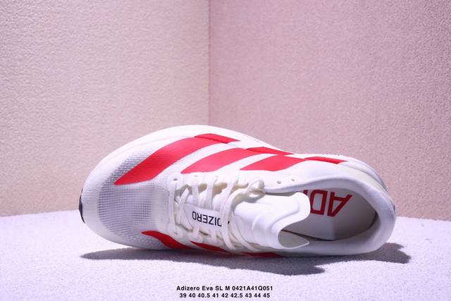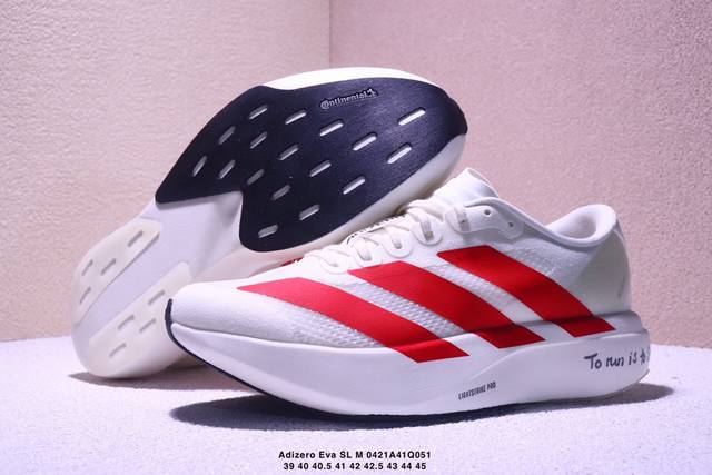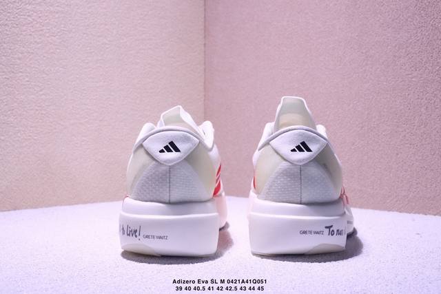 Ad Adizero Eva Sl M 零度进化版系列低帮轻便透气竞速休闲运动慢跑鞋 Js1183 相信大家对去年 Adidas 横空出世的 顶级超跑 Adizero Adios pro Evo 1 记忆犹新!不仅登顶阿迪史上最轻跑鞋宝座,更在接下来的全球马拉松赛事中,持续书写着惊人成绩,被网友戏称新一代 阿迪神鞋 全网刷屏!极简设计语言与强烈速度感和存在感的鞋侧三线,让人过目不忘,特别种草!其中定位于中长跑训练的 Adidas Adizero Evo Sl,整体外观造型与 Adizero Adios p