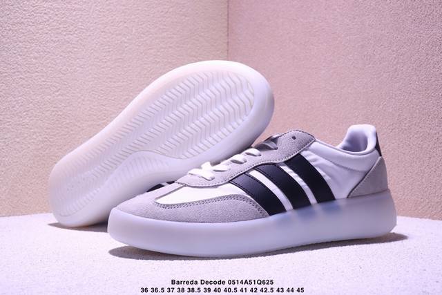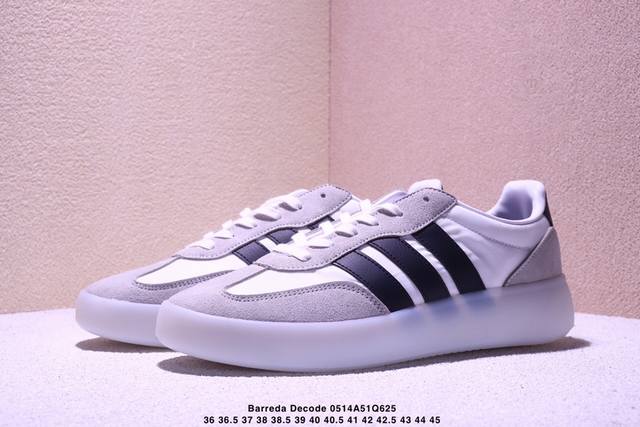 Adidas 阿迪达斯 德训系列 男女鞋真标半码制,采用翻毛皮组合牛津布鞋面材质,外置Rb耐磨橡胶外底阿迪达斯Adidas Barreda Decode Low 巴列达解密系列低帮复古德训风系带百搭休闲运动T字头板鞋
