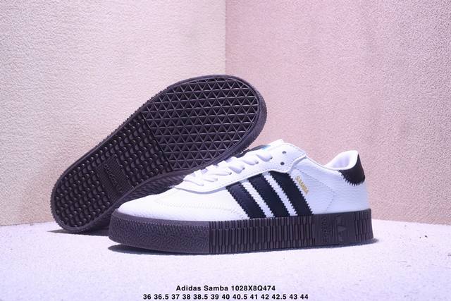 Adidas Samba 百搭单品 Adidas三叶草 Samba Rose W女子低帮厚底板鞋 杨幂同款 情人节限定款 鞋底透明生胶 鞋面采用皮革材质制成,穿着舒适而质感细膩。融合时尚的厚底设计,加入3厘米厚的生胶大底,侧面辅以三叶草 Logo和履带纹理装饰细节 货号:Aq1134 尺码:36 36.5 37 38 39 40 41 42 42.5 43 44 Xm1028Q474
