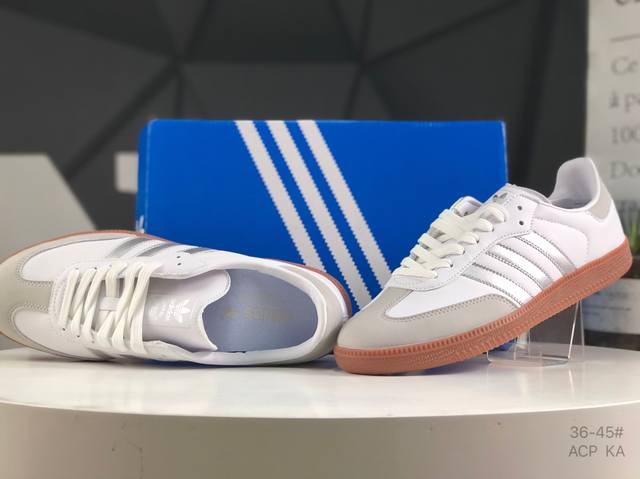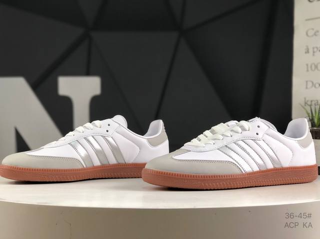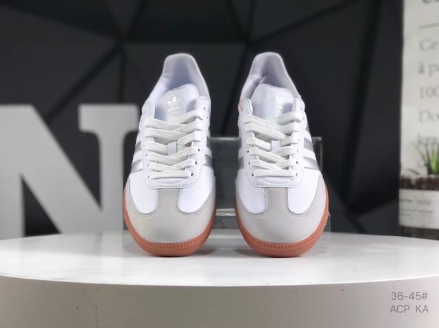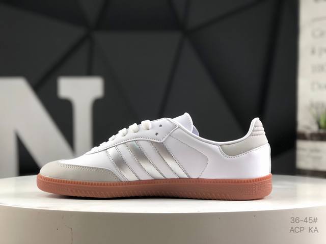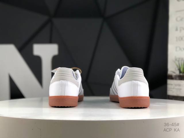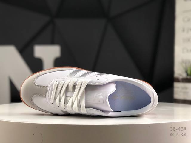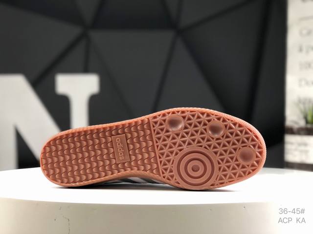 Adidas 近70年的经典Samba Og 修长的鞋楦,略微尖尖的鞋头,翻毛皮的鞋头拼接,这些我们都看得到的元素正是Samba的设计灵魂