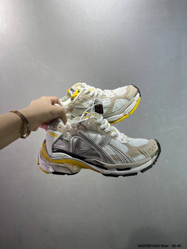 公司级Balenciaga 巴黎世家 纯原巴黎世家Runner运动鞋 不含皮运动鞋,网布材质,磨损效果,鞋头边缘印有尺码,背面浮印尺码,外侧印有跑者徽标,鞋舌刺绣Balenciaga品牌标识,鞋跟背面Balenciaga品牌标识,材质采用70%聚氨酯、30%聚酯纤维 货号:772767 W3Rmu 9934 尺码:35 36 37 38 39 40 41 42 43 44 45 46 Id:242Hxd1030