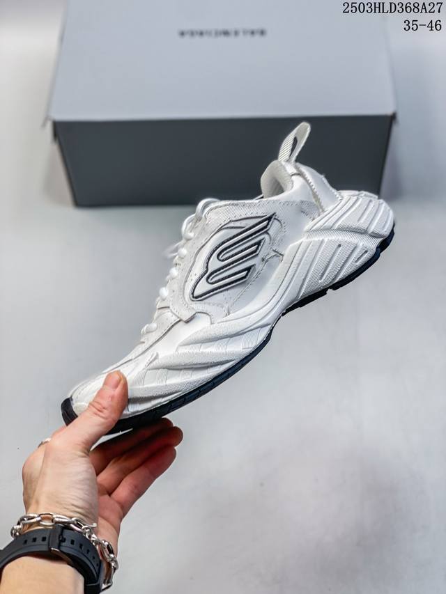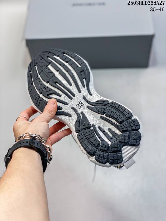 balenciaga Monday 巴黎世家 16代 低帮 黑色 牛皮革圆头系带低邦生活休闲鞋 Balenciaga全新运动鞋款Mondayv Shoesg以跑步鞋的概念性重新诠释为基础,将经典设计与手工艺美学相结合,采用的是全皮革的混合设计,搭配超轻的技术橡胶鞋底,依旧是 「巴味」十足;鞋面采用顶级牛皮革,经工匠精心打磨,质感细腻,缝线细密精致,尽显奢华品质。经典黑色酷炫百搭,圆头搭配系带设计,复古又时髦,鞋身标志性的品牌标识,醒目吸睛,彰显独特品味。