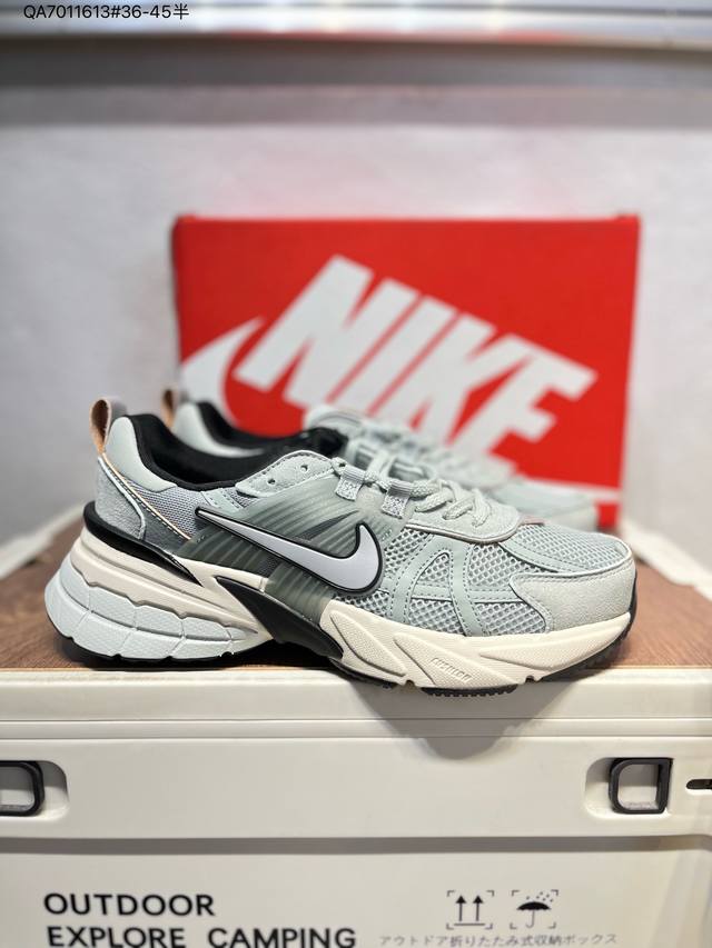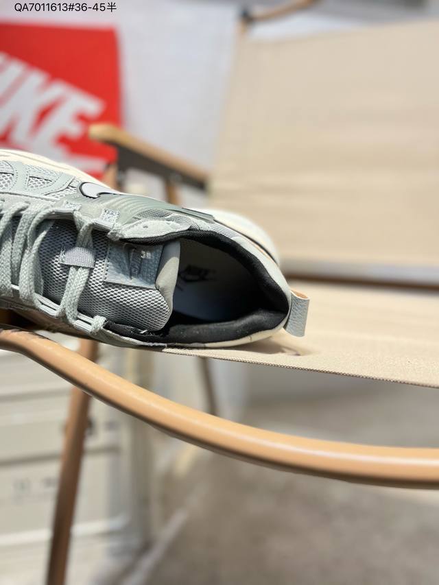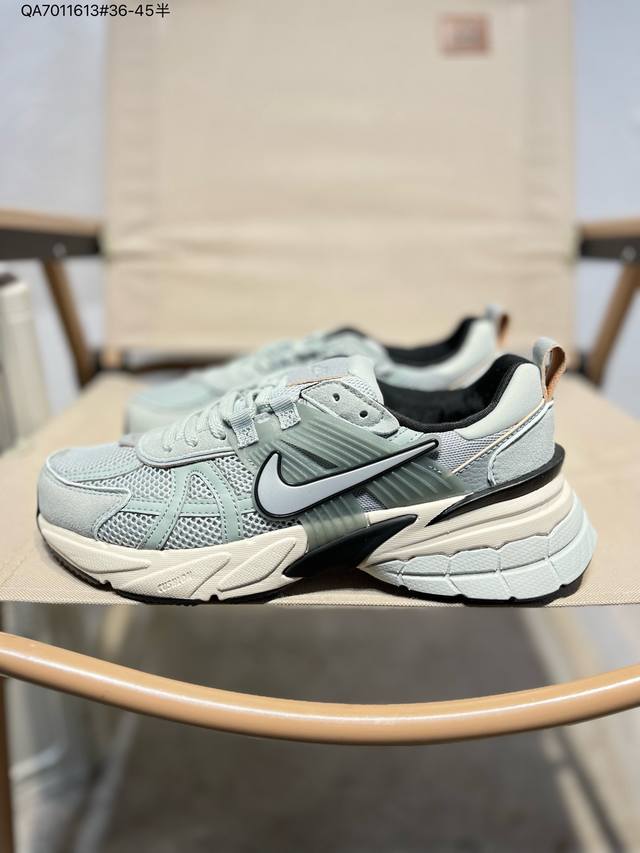 Nk V2K Runtekk 减震防滑低帮 复古老爹鞋跑步鞋 鞋款被命名为 Runtekk 设计上借鉴了 2000 年的跑鞋风格 配色上以金属银为主调 简练又有复古运动气质 材质上使用大面积网眼、皮革、Tpu 组成 支撑和透气性肯定不错 中底处由 Cushlon 泡绵打造 保证在压马路时可以提供优秀脚感 并通过一手做旧氧化效果突出复古感 中底造型很容易让大家联想到巴黎世家3Xl 增高效果同样不能忽视Fn6703 Qa7011613#36-45半